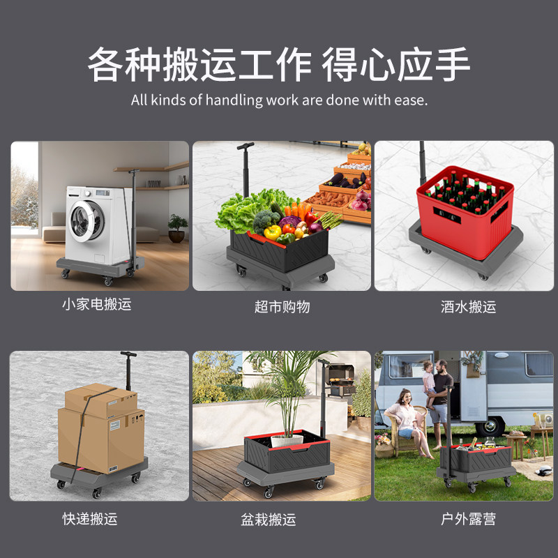 为您提供商品家用折叠手推车便携伸缩手拉车购物平板拉杆小拖车静音拉货搬运车的详细介绍,