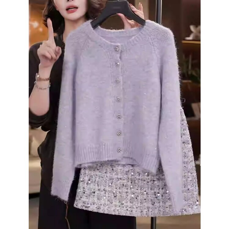 春秋新款 温柔风甜美减龄时尚 套装 软糯毛衣外套半身裙 胖MM遮肉大码由