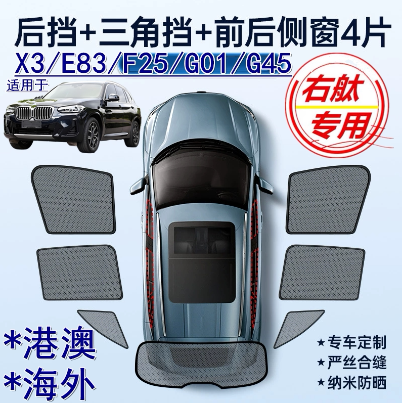 F25车窗网G01 G45遮阳挡 BMW右舵X3遮阳帘右軚宝马E83 适用香港版