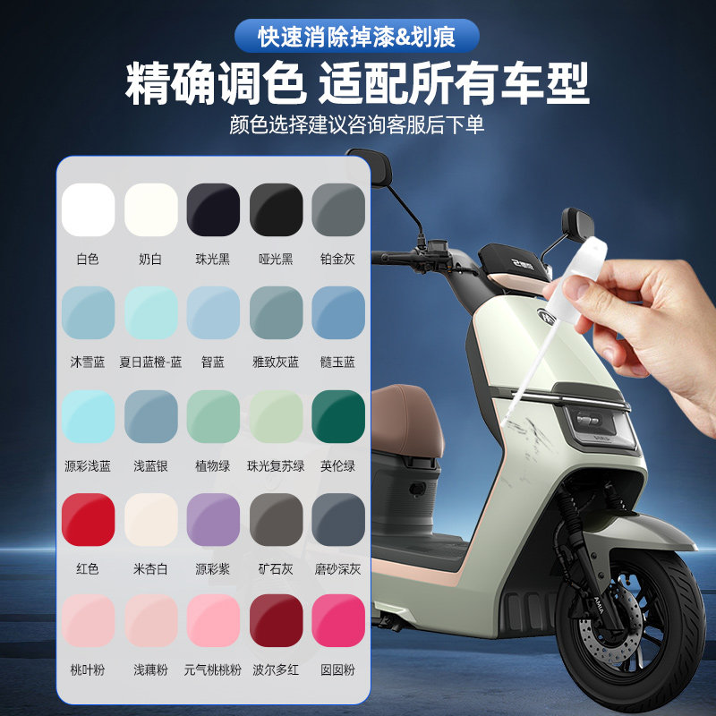 电动车补漆笔绿源车补漆神器划痕修复爱玛9号蓝黑银绿色点漆雅迪由