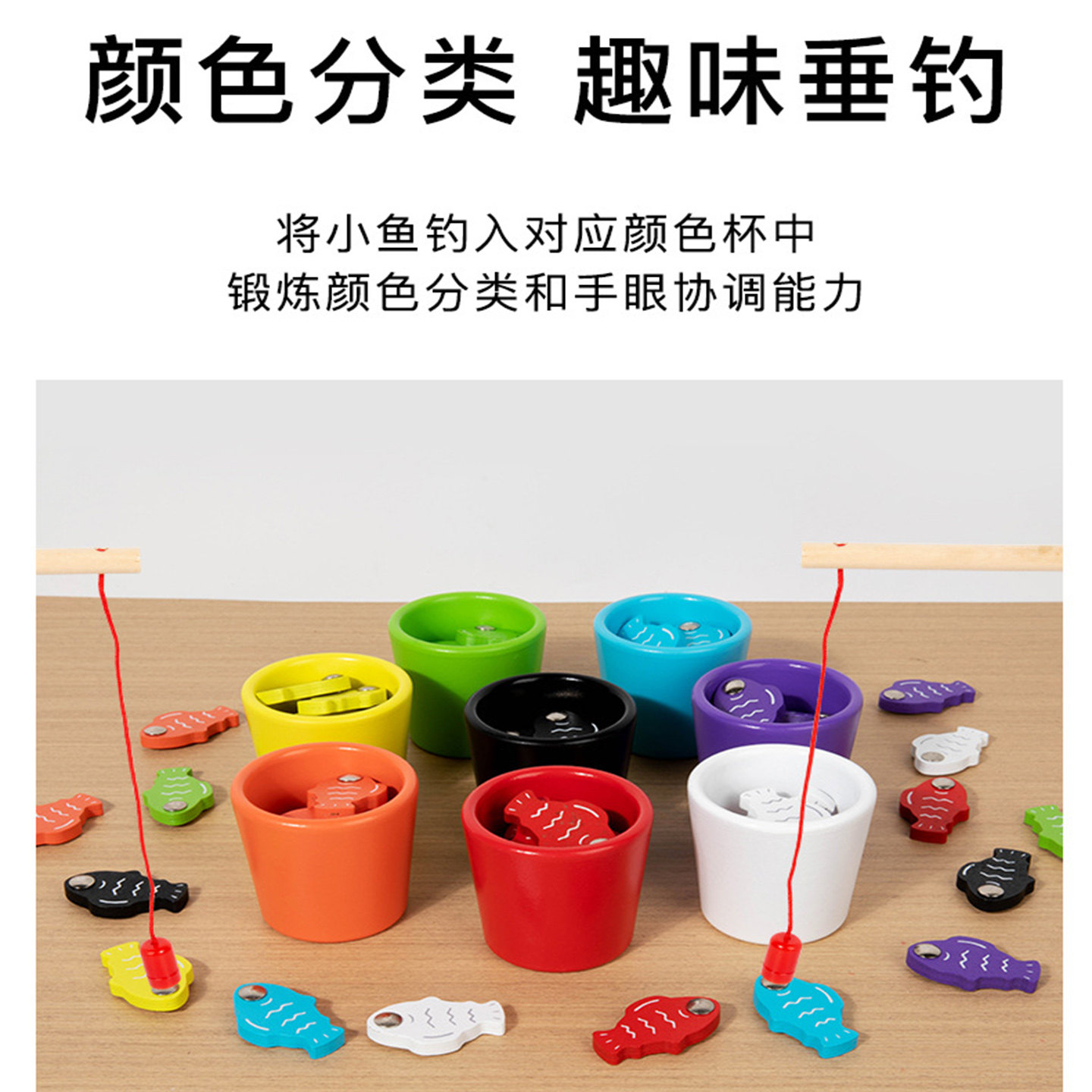 为您提供商品儿童钓鱼竿益智玩具婴幼儿园宝宝1岁3早教木制磁吸铁颜色分类认知的详细介绍,