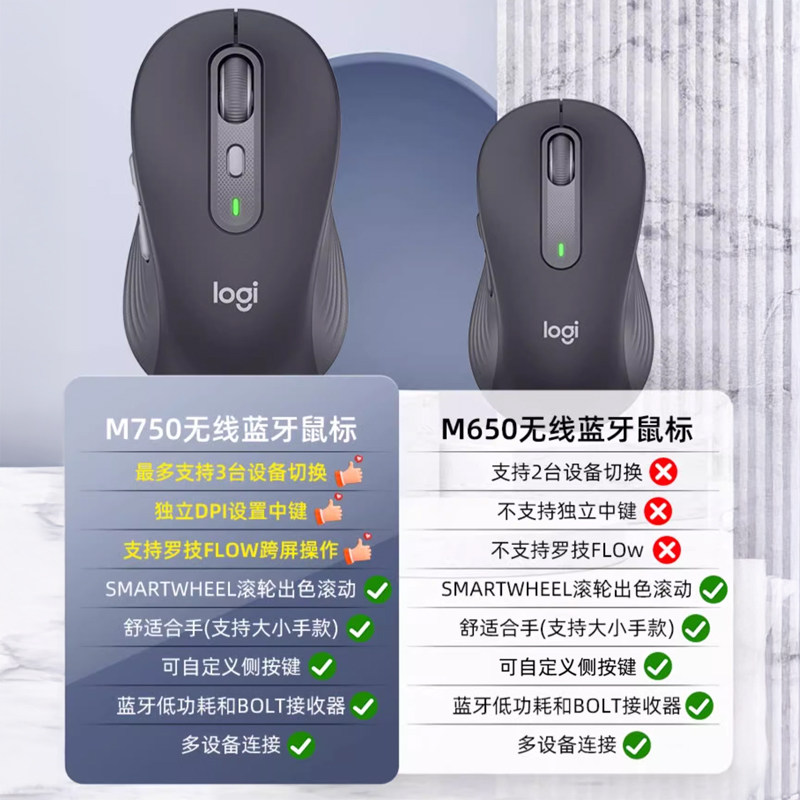 为您提供商品罗技M750M 无线蓝牙双模鼠标轻音办公电脑平板笔记本大小手的详细介绍,