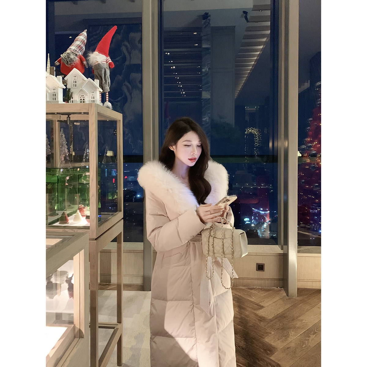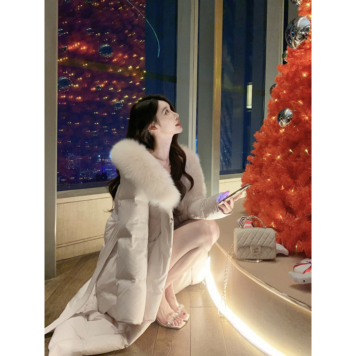 冬装 JustQin 初雪降临 2025新款 收腰羽绒服女 狐狸大毛领中长款