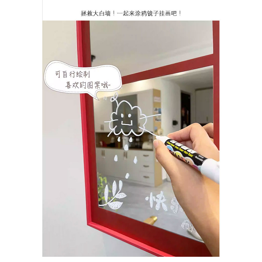 为您提供商品饰画 多巴胺可涂鸦镜子画包豪斯仿假窗户卧室镜面挂画餐厅大白墙装的详细介绍,