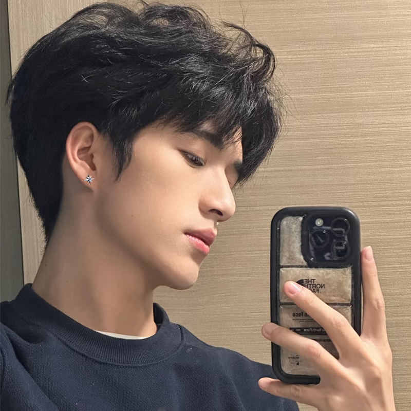 F136钛合金八芒星耳钉男百搭锆石耳骨钉高级感小众耳饰送生日礼物由