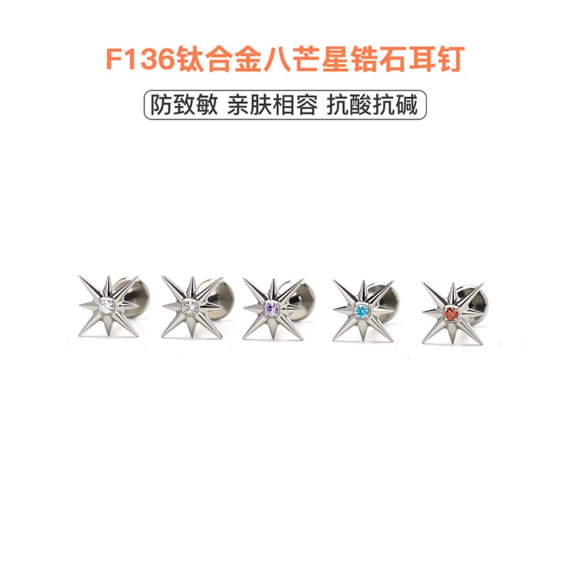 为您提供商品F136钛合金八芒星耳钉男百搭锆石耳骨钉高级感小众耳饰送生日礼物的详细介绍,