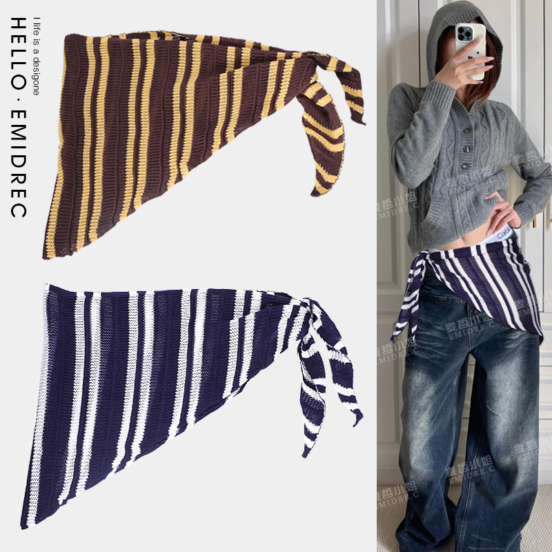 宽腰带配饰女爵士舞腰巾臀巾 复古针织屁帘腰封叠穿三角巾配牛仔裤