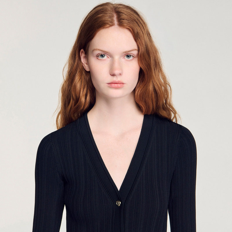 为您提供商品SANDRO2026春夏新款 法式 优雅黑色喇叭袖 蕾丝收边针织连衣裙 女装的详细介绍,
