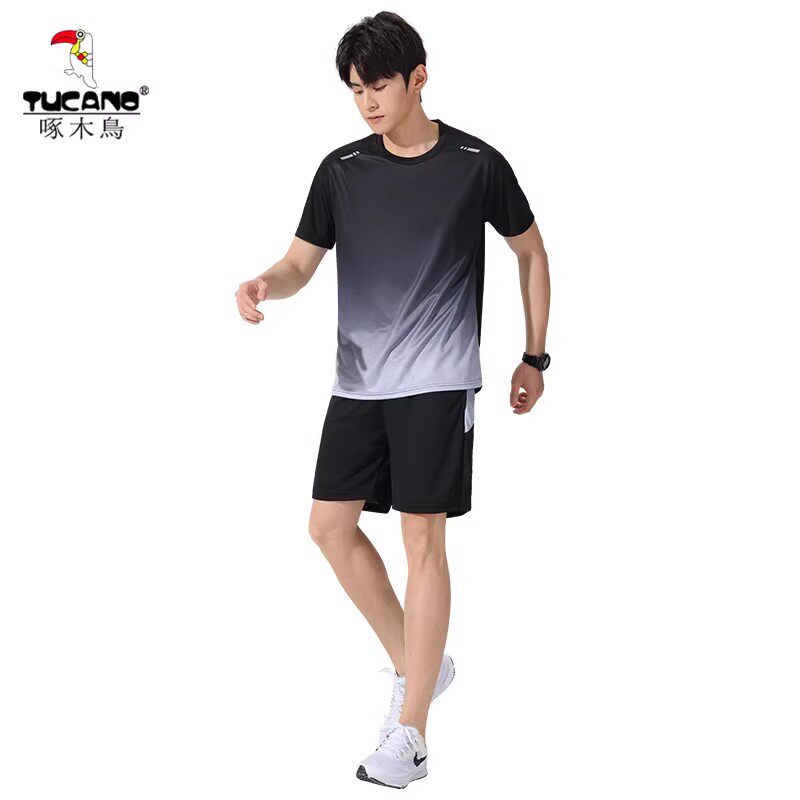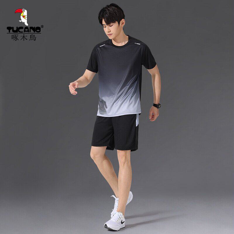 为您提供商品跑步新款 啄木鸟运动套装 男速干衣冰丝T恤短袖 短裤 健身上衣服 夏季的详细介绍,