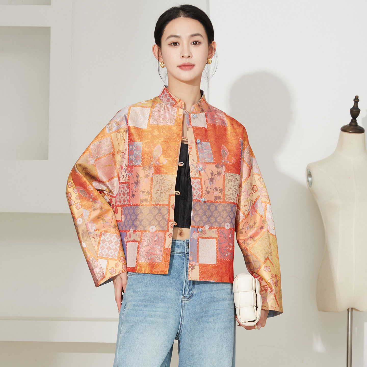 高定双面穿100%桑蚕丝花色拼接非遗蜀锦新中式 真丝外套女国风开衫由