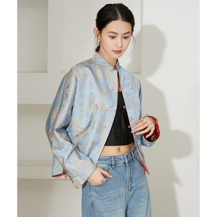 高定双面穿100%桑蚕丝花色拼接非遗蜀锦新中式 真丝外套女国风开衫