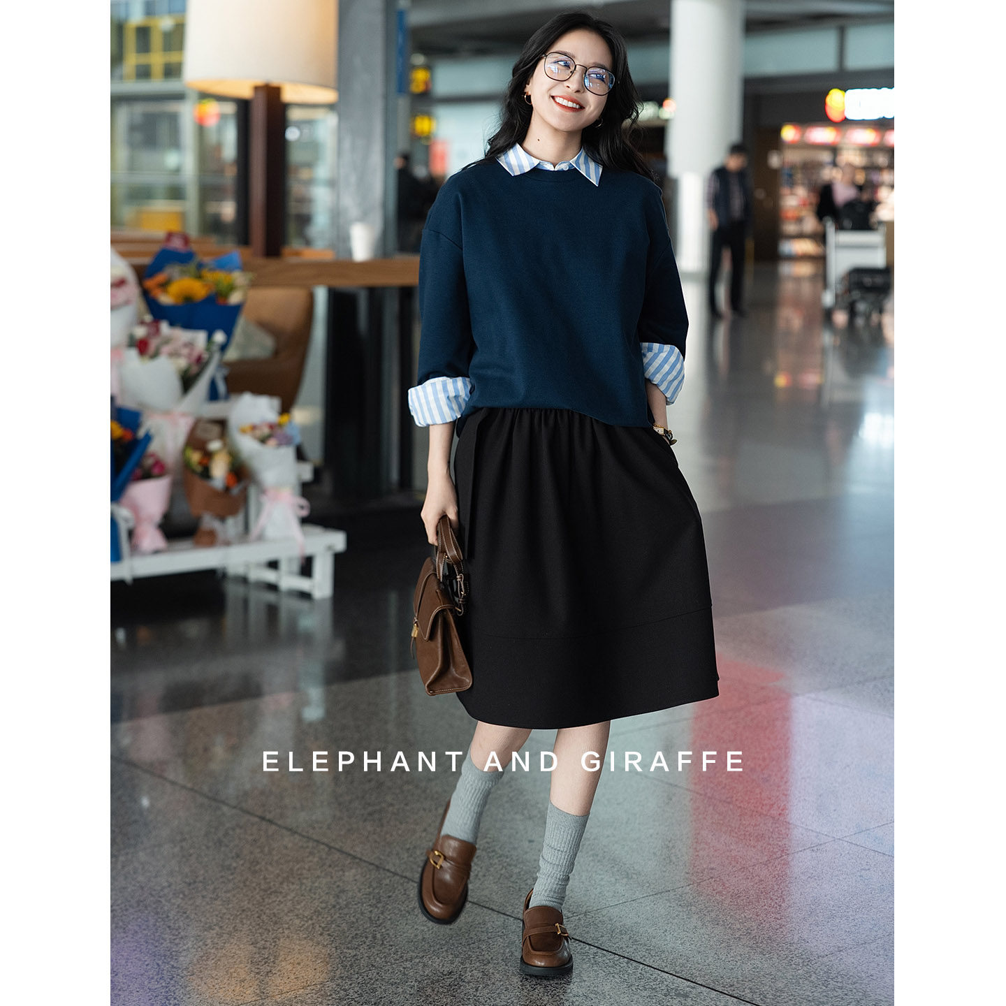 大象和长颈鹿 春天 黑色半裙 优雅叙事收腰遮胯602212 裙摆摇曳由
