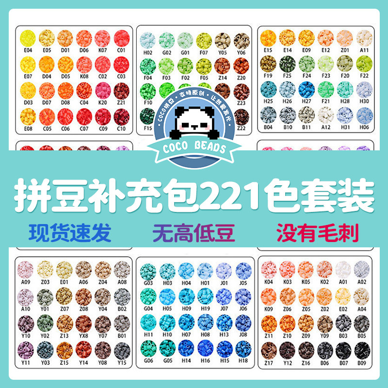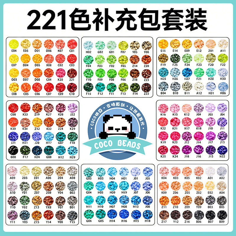 手工diy豆子2.6mm小豆 COCO拼豆补充包材料包全套融合221色套装