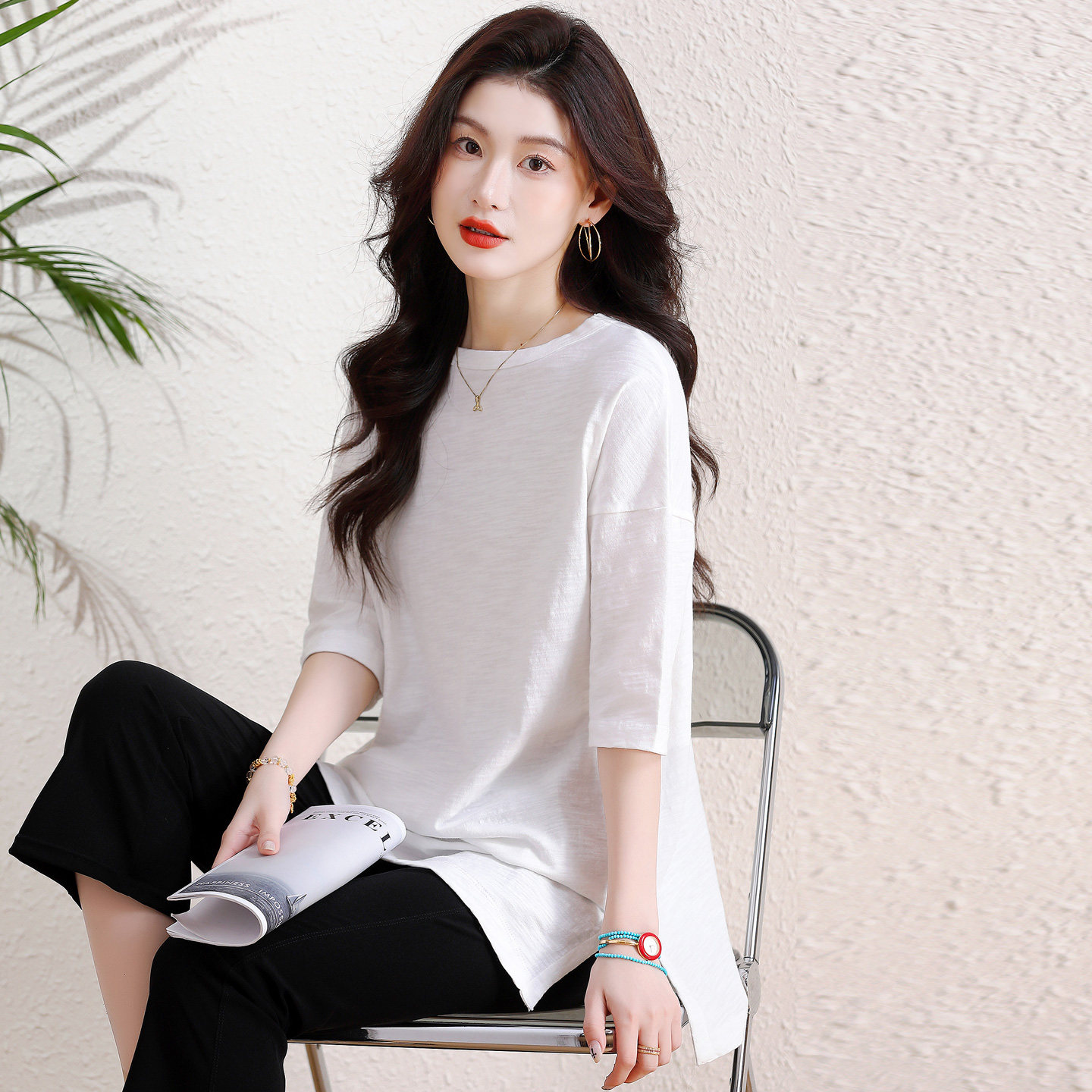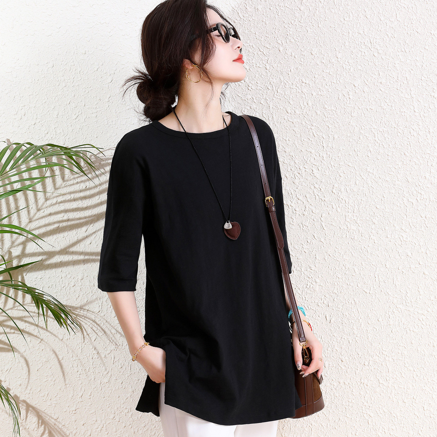 宽松oversize大版 中长款 上衣春夏大码 女半袖 T恤 遮屁股搭配鲨鱼裤由