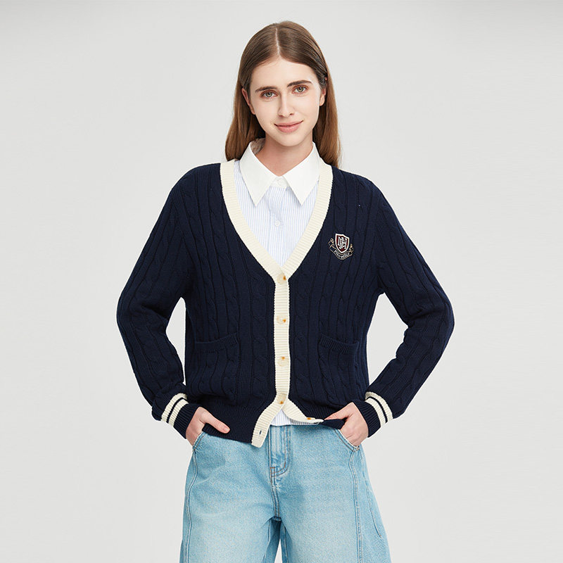 POLOSHIELD女士经典 休闲开衫 针织上衣 6261M1A024 V领美式
