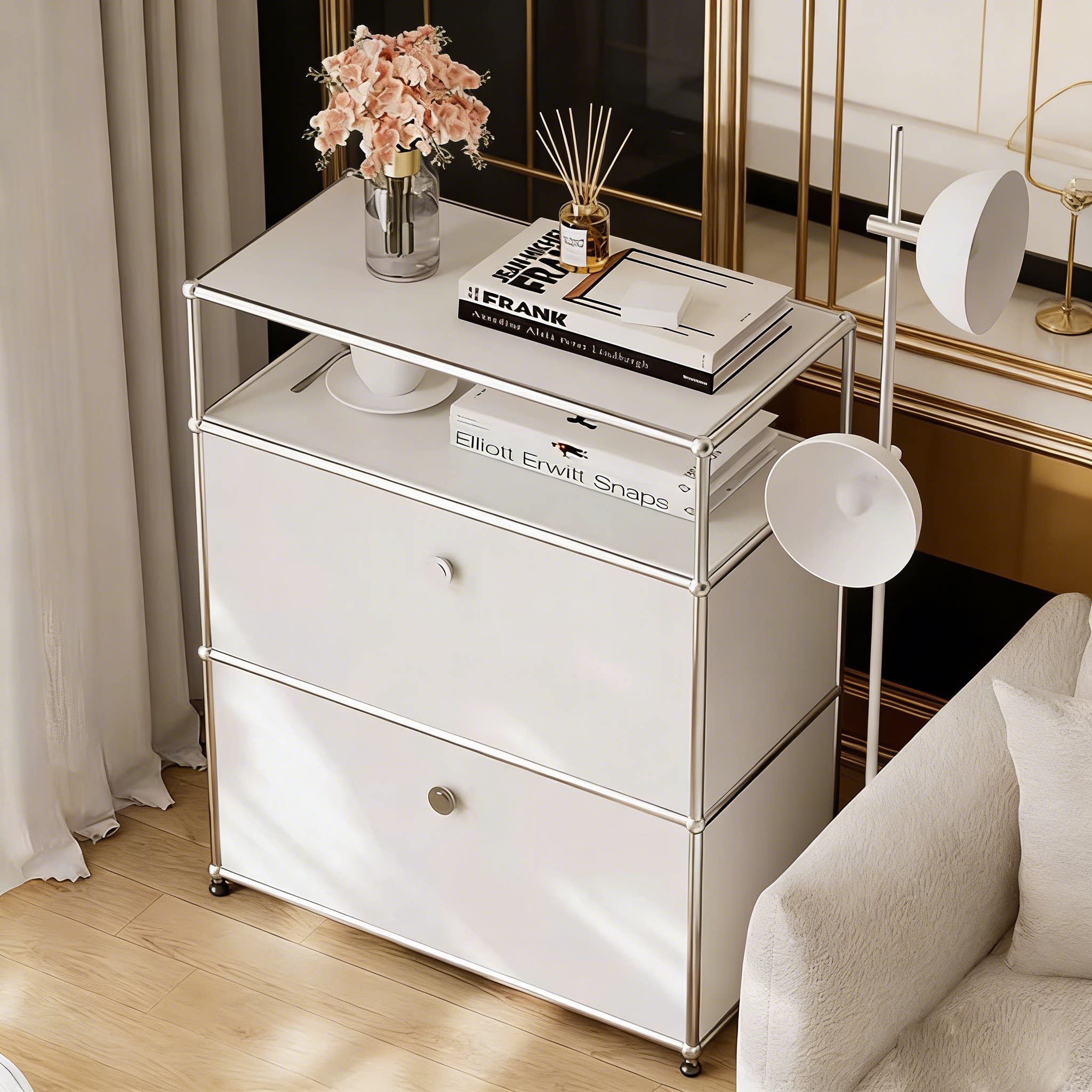 轻奢床头柜 简约现代客厅储物斗柜 ins风不锈钢模块组合柜 网红