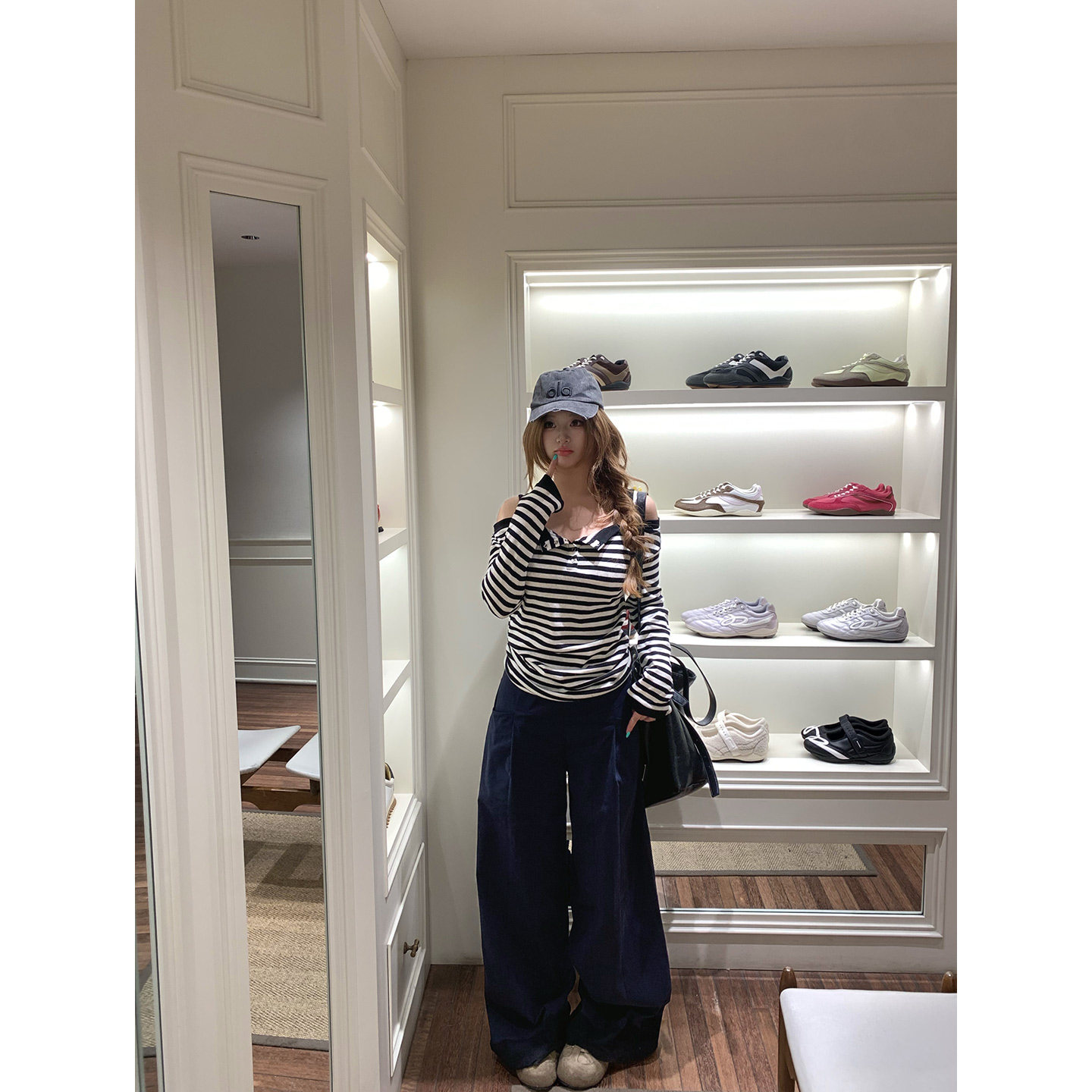 你 轻氧假日 韩系微胖mm日常百搭条纹露肩春夏长袖 T恤上衣 鱼