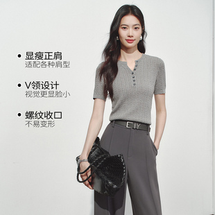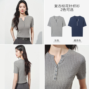 衣香丽影粗绞花短袖 女2026年夏装 新款 天蚕丝上衣150419007 针织衫