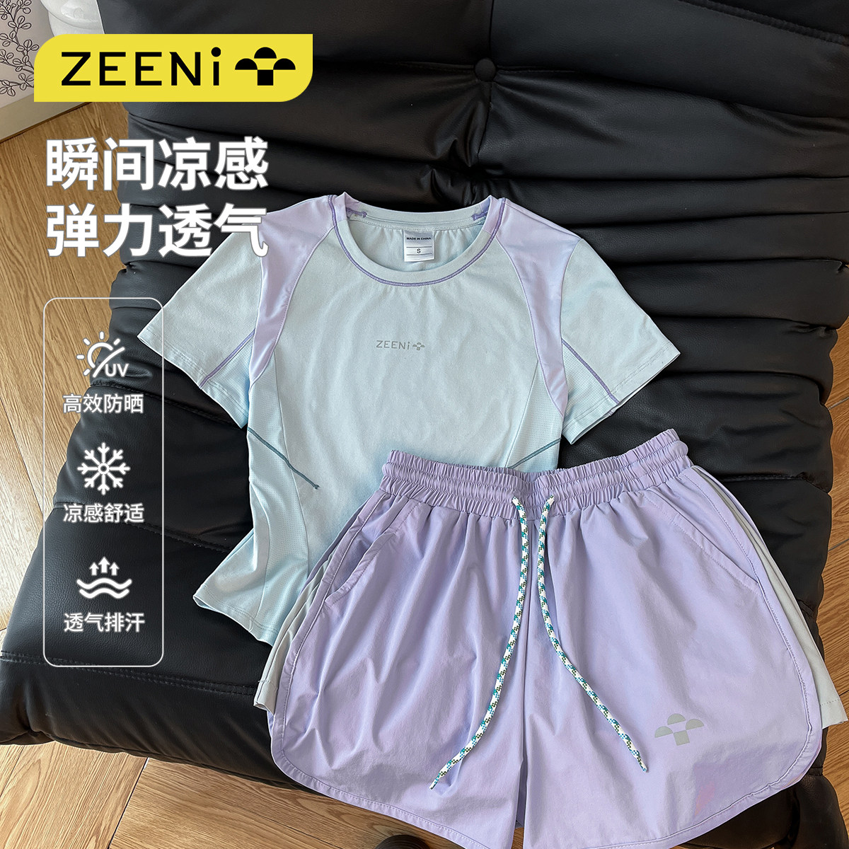 户外徒步运动套装 速干衣防晒健身服羽毛球t恤女休闲短裤 ZEENI短袖由