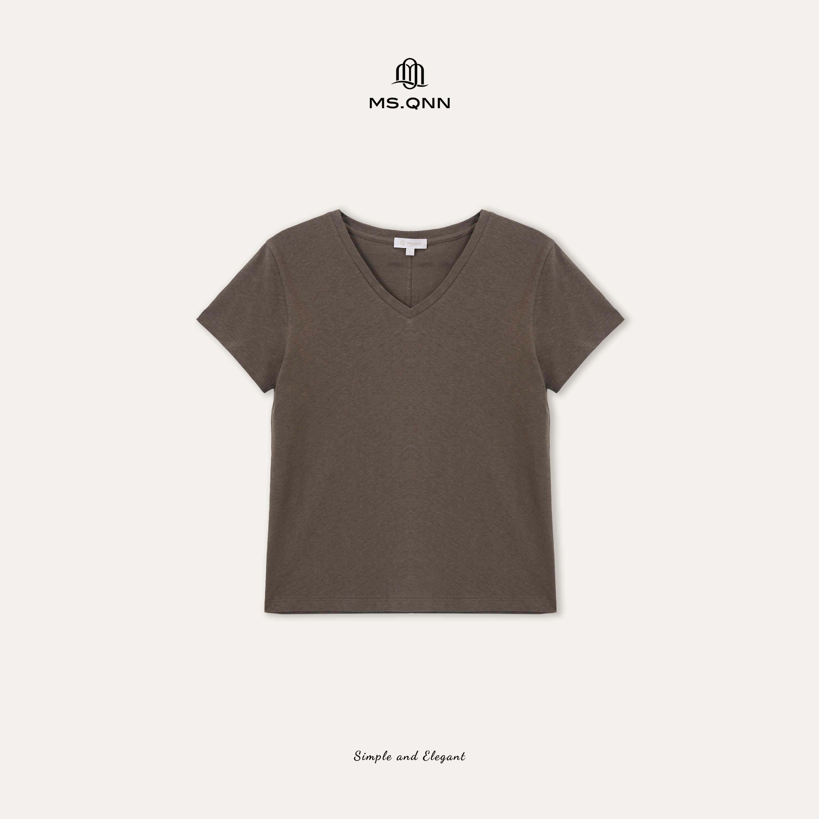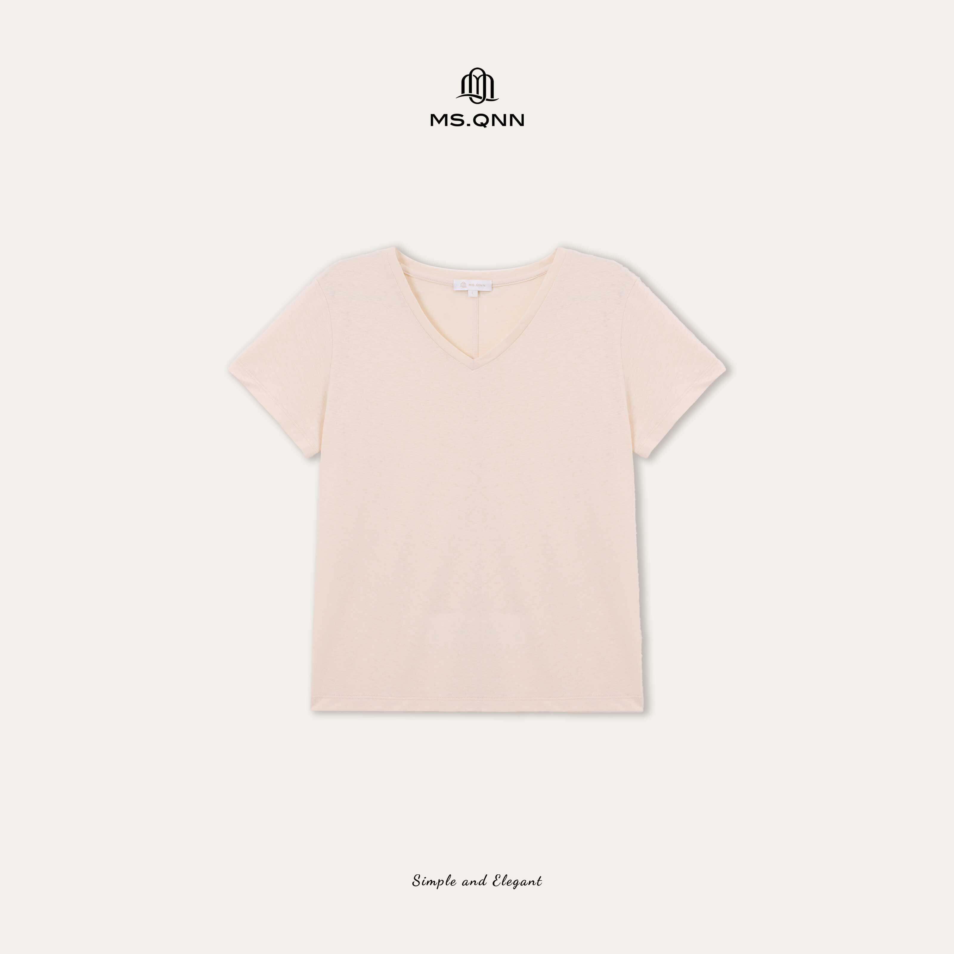 肌理感水洗棉T恤 Q姐 53T527 w家经典 胶囊系列 V领亚麻