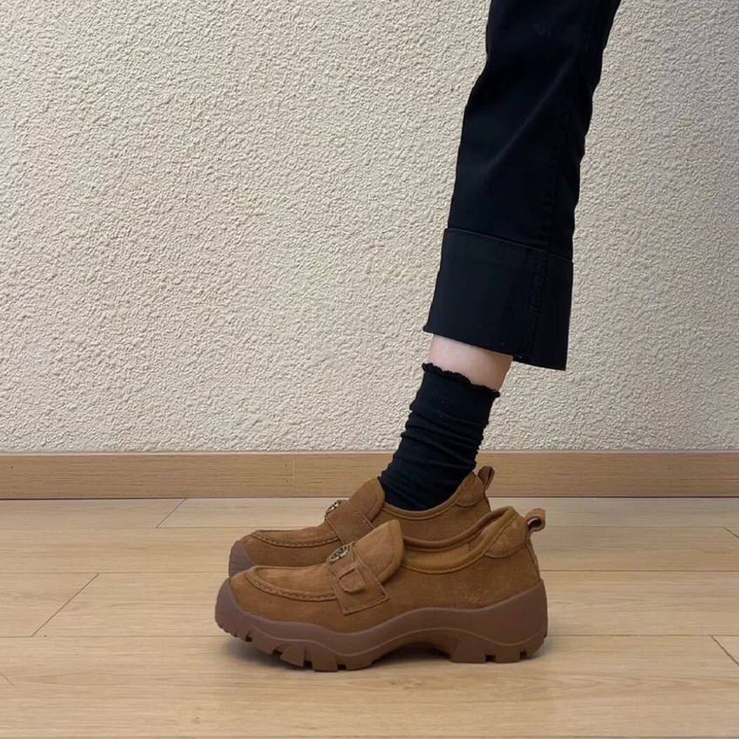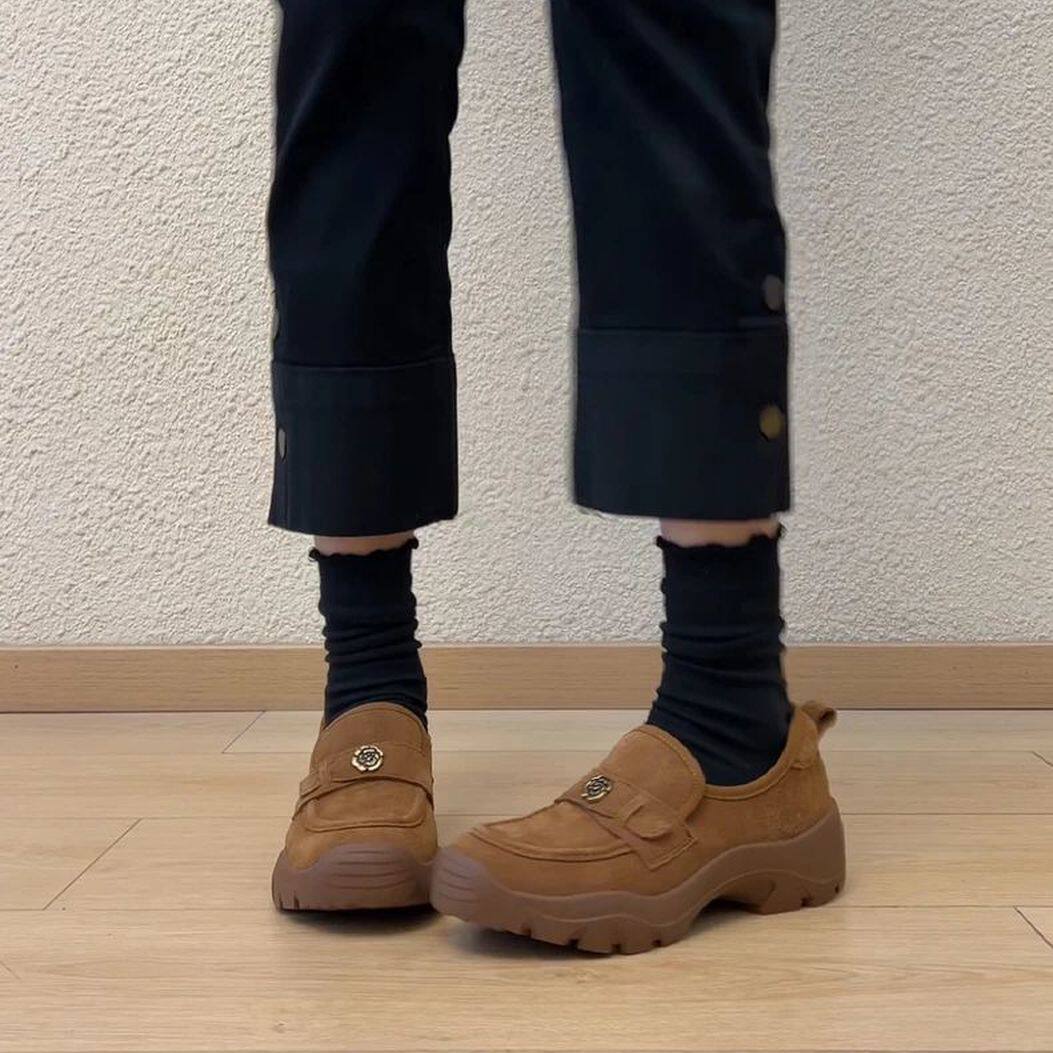 通勤山茶花厚底单鞋 5.5cm休闲日常磨砂圆头运动风乐福鞋 nnmiss