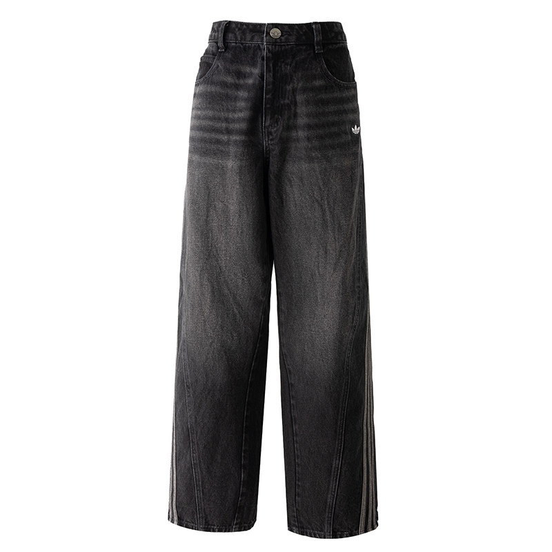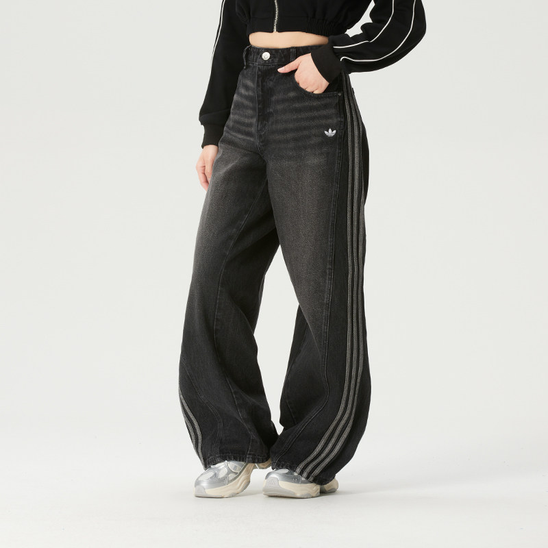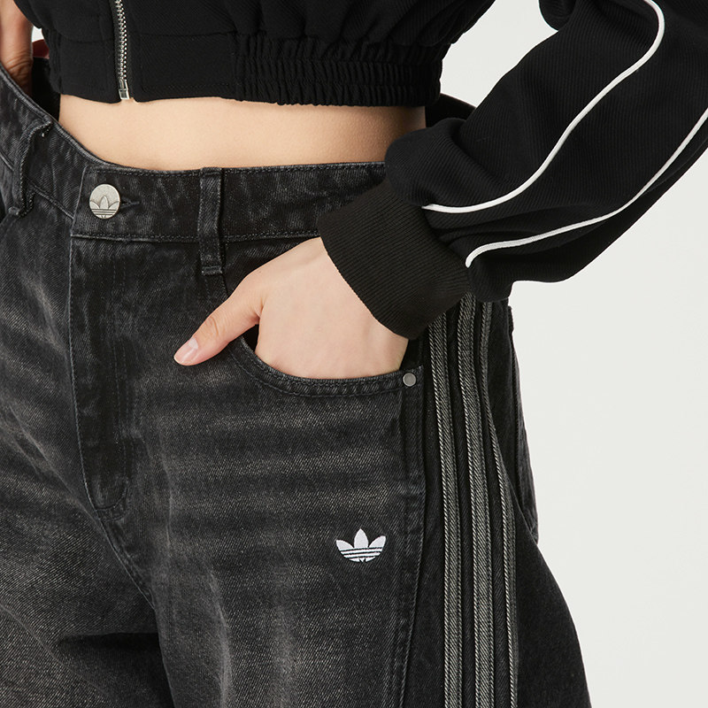 宽松休闲裤 阿迪达斯三叶草女裤 时尚 牛仔运动裤 子JX6865 直筒长裤由