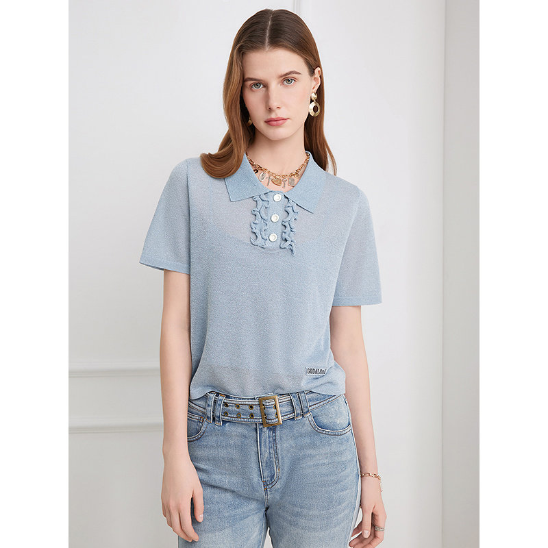 Goodland美地女装 新款 荷叶翻领两件套针织衫 LC36206010 2026夏季