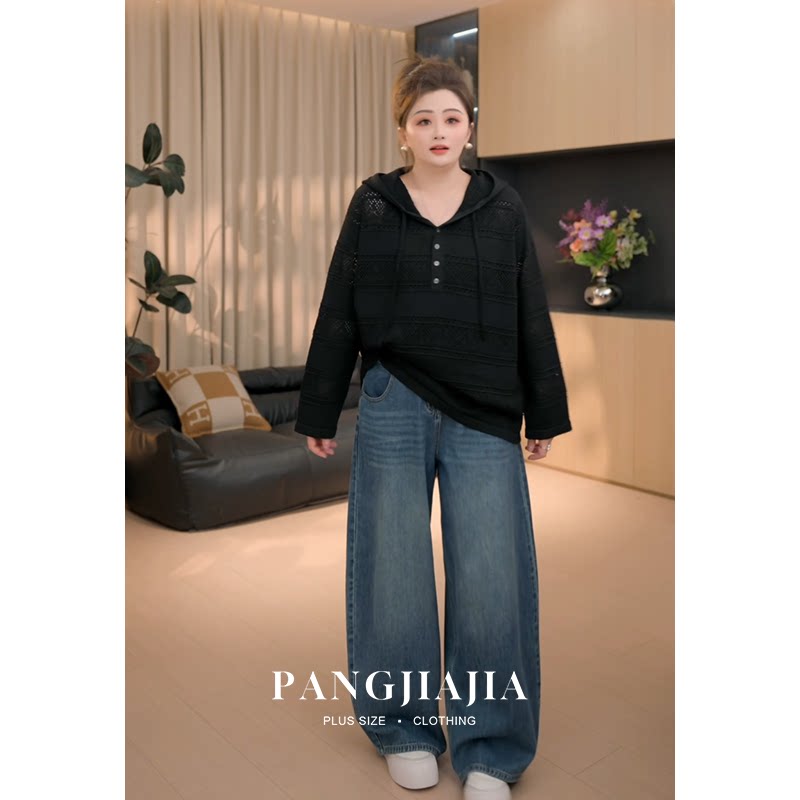 女装 连帽上衣 胖妹妹mm大码 新款 时尚 春季 胖佳佳 沐春风针织衫