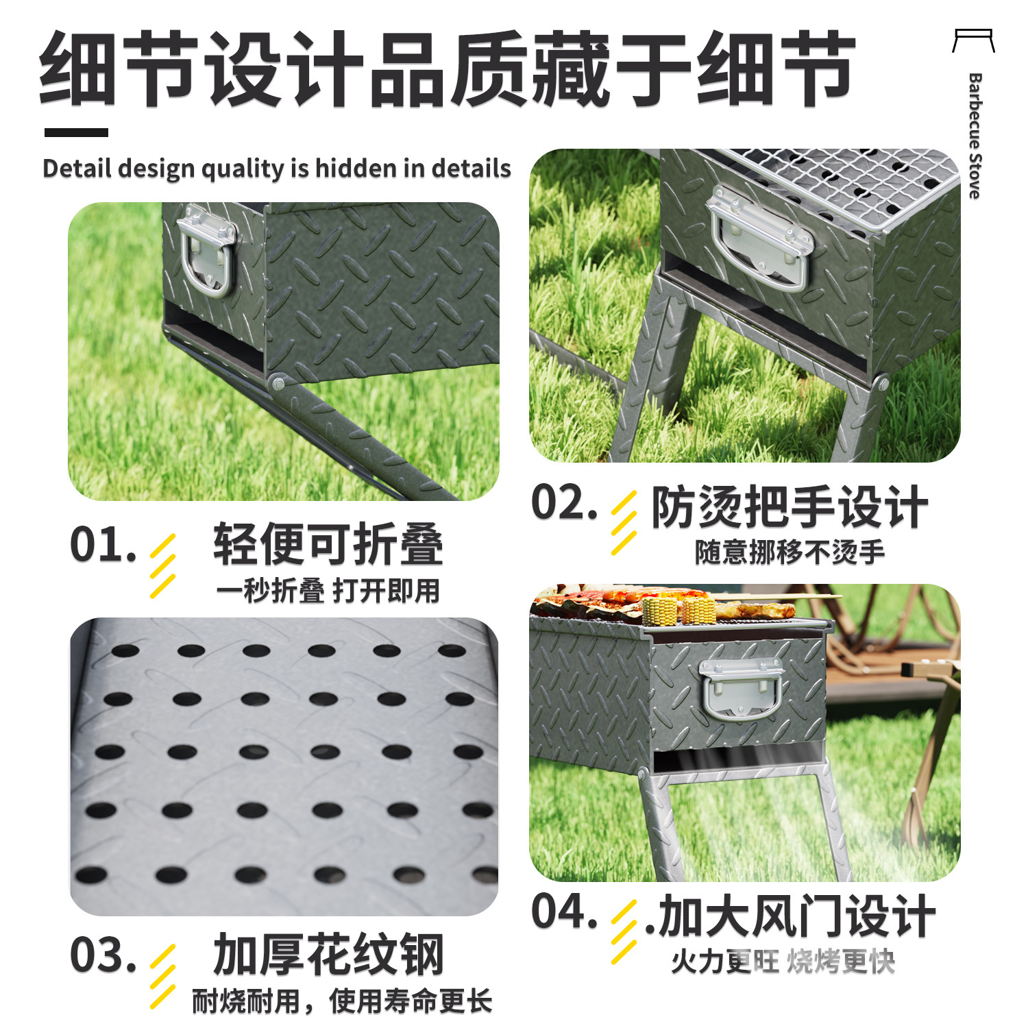 为您提供商品户外烧烤架家用便携露营摆摊商用折叠烤肉炉子全套 加厚烧烤炉新款的详细介绍,