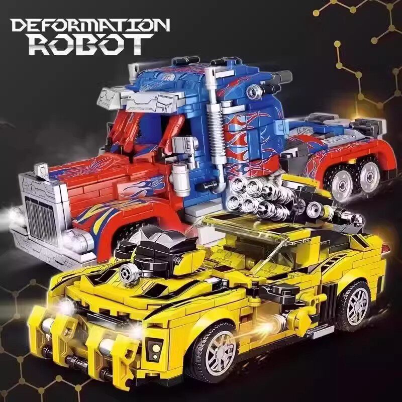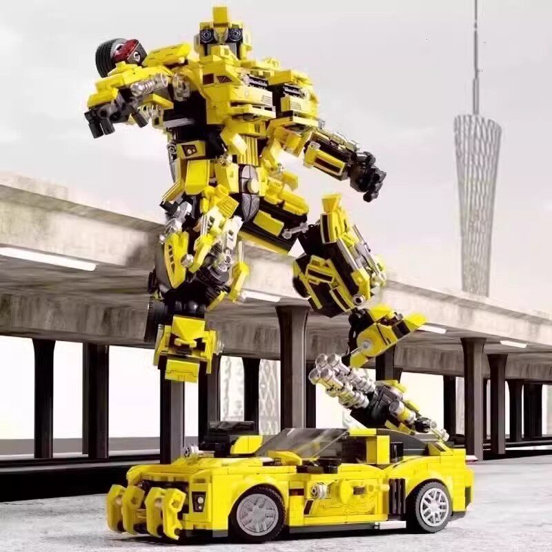 玩具 变形积木擎天金刚柱大黄蜂机甲汽车机器人男孩子儿童益智拼装由