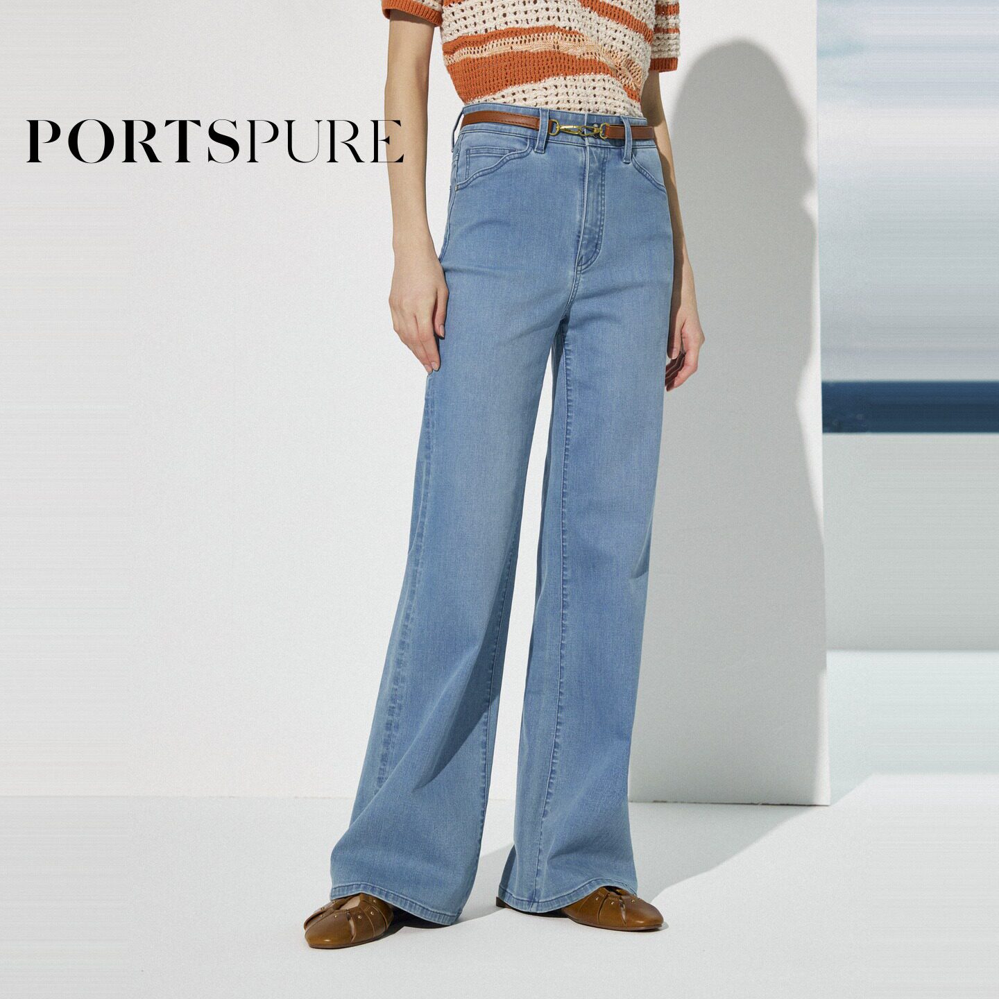 波浪分割水洗蓝牛仔喇叭裤 2026早春新品 宝姿PORTSPURE女装由