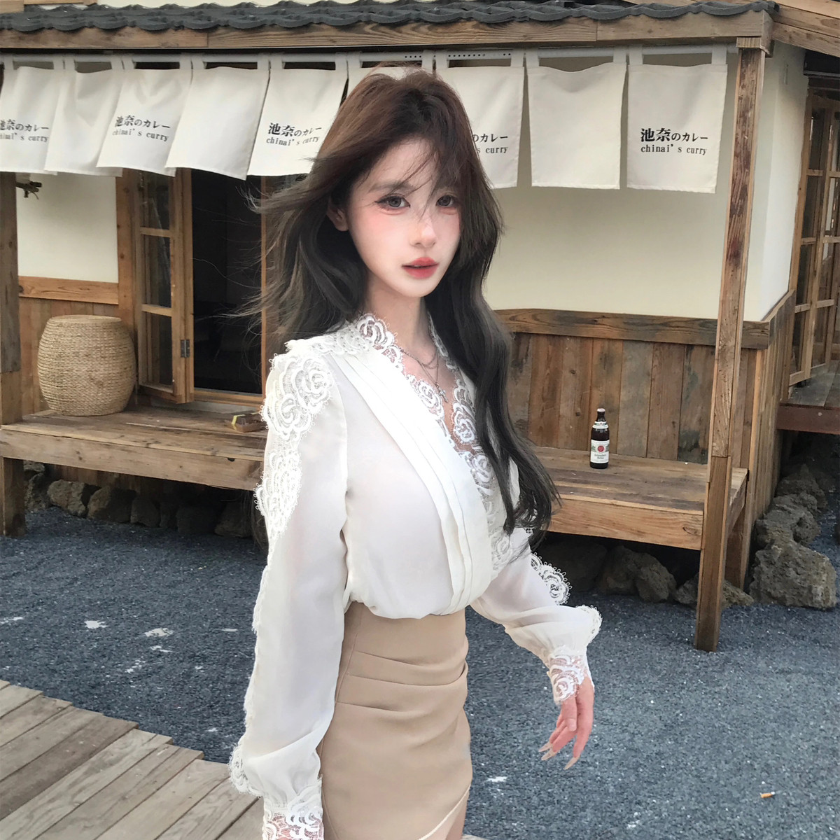 为您提供商品欲天花板纯欲风拼接玫瑰气质蕾丝V领衬衫 MEI 美姿 半身裙套装的详细介绍,