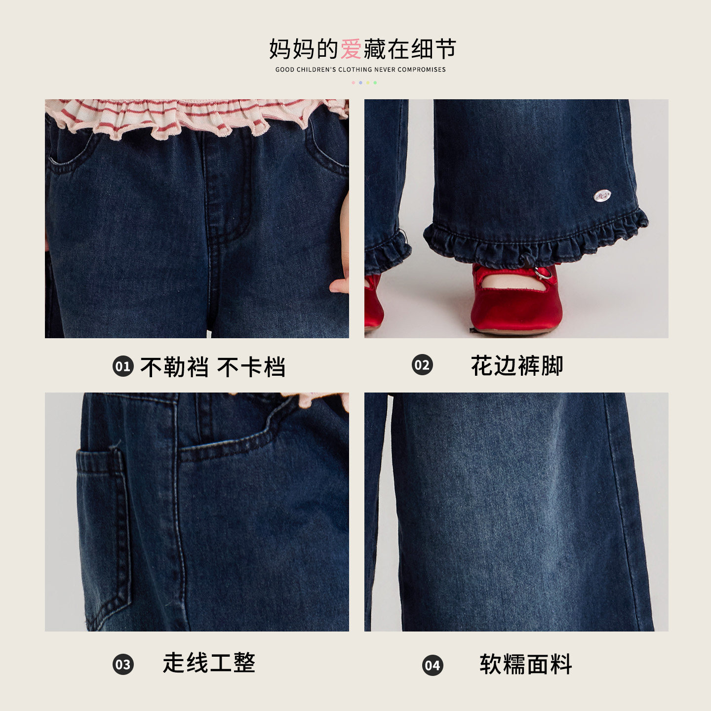 宝宝时尚 允儿妈女童日系纯棉泼漆牛仔裤 儿童2026新款 直筒裤 休闲裤