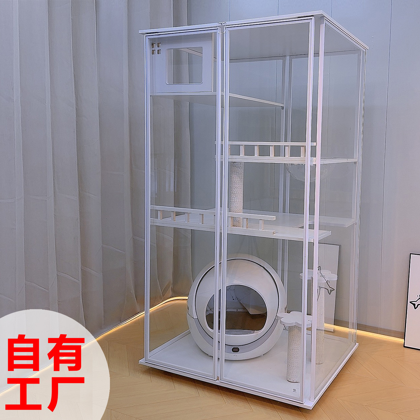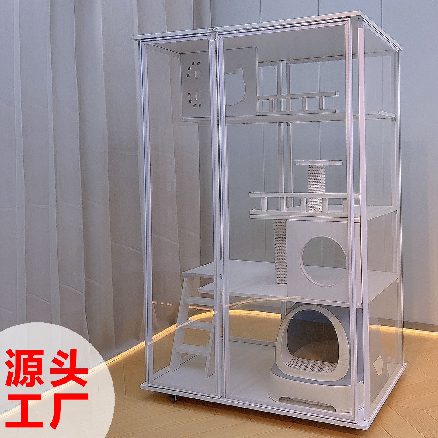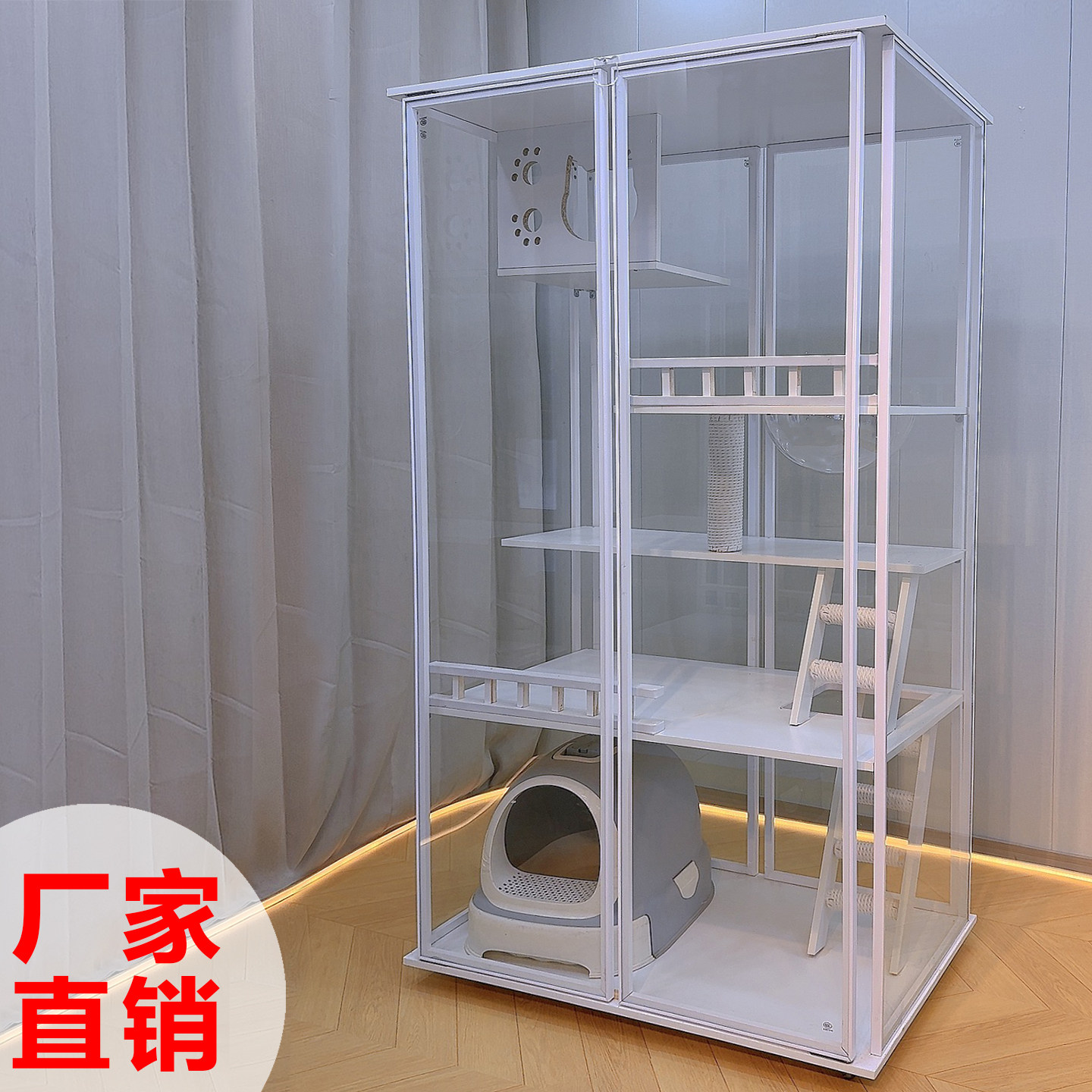 为您提供商品豪华实木猫别墅家用室内猫窝超大空间猫柜猫舍带厕所一体玻璃全景的详细介绍,