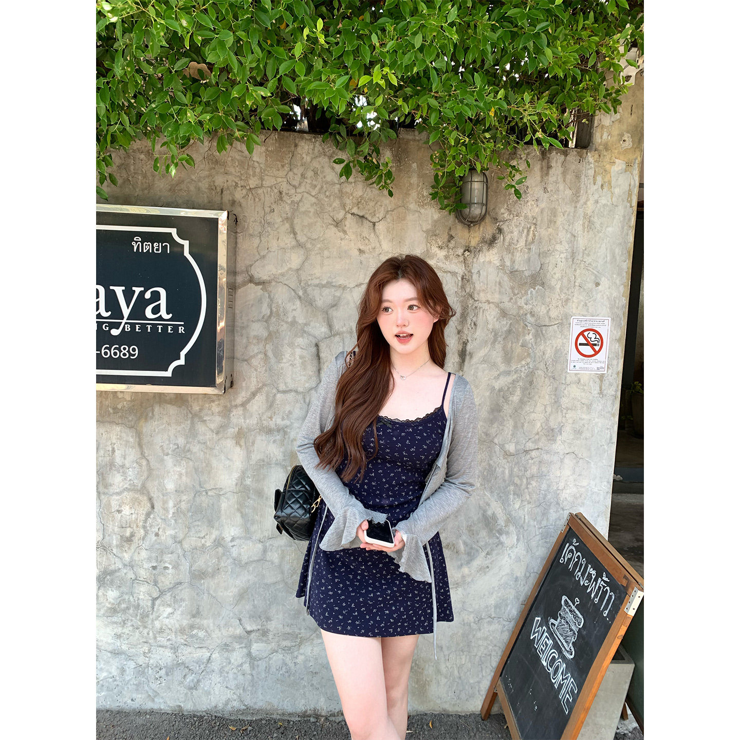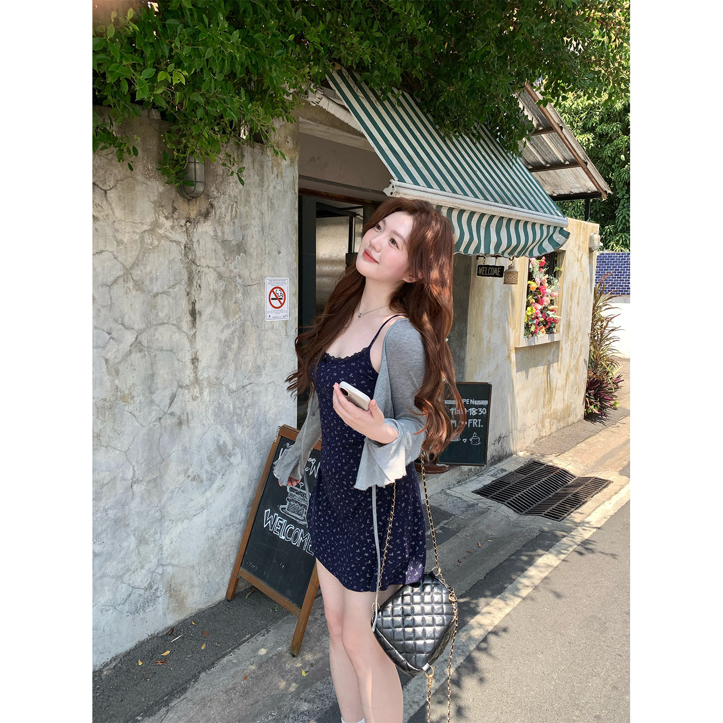 韩系微胖mm清纯春夏小碎花吊带连衣裙开衫 你 鱼 堇色鸢尾 套装由