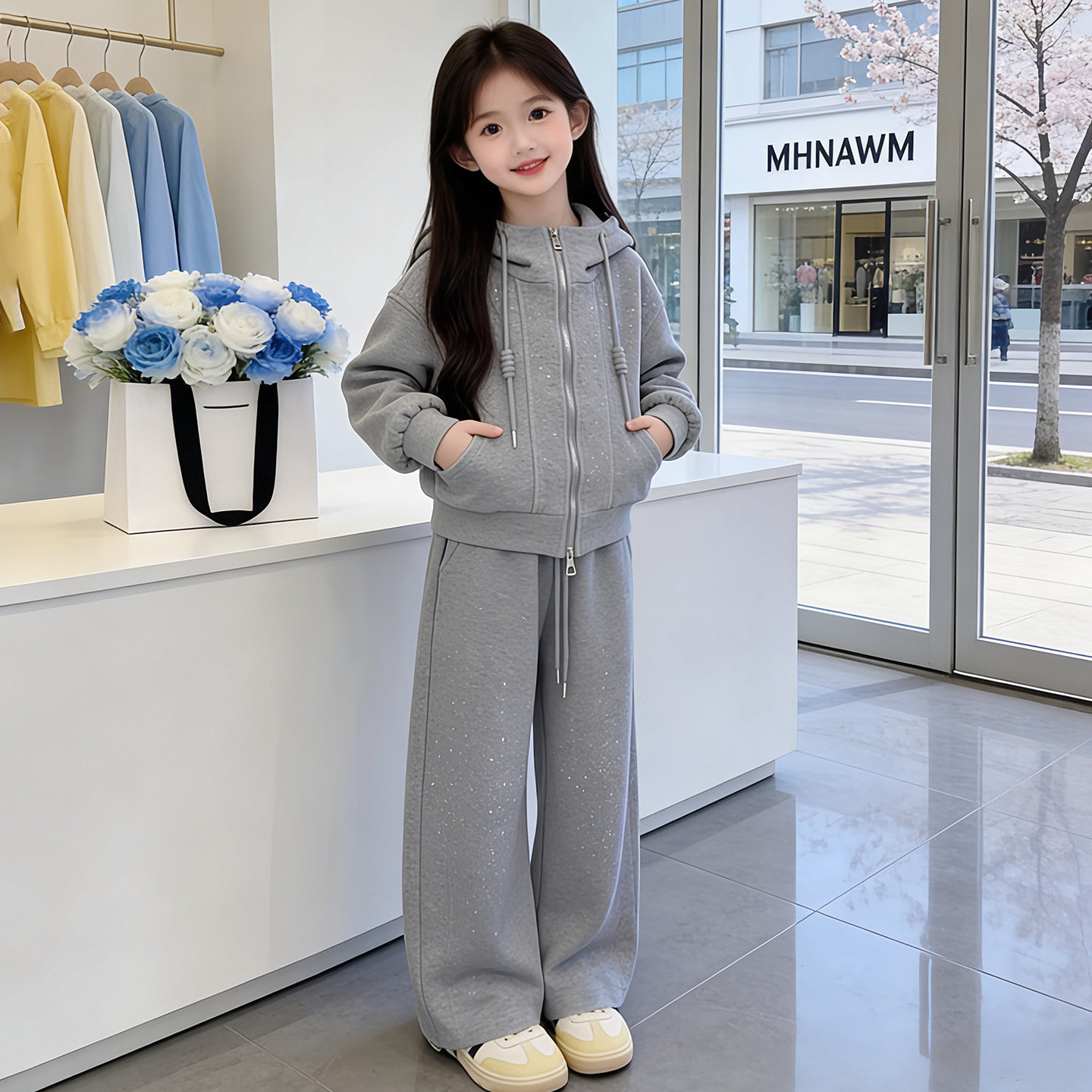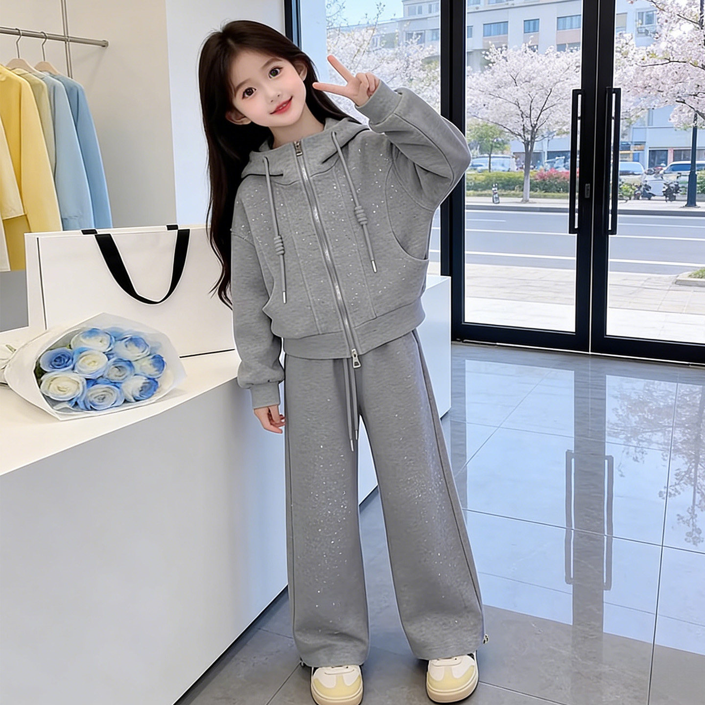 女童春秋款 洋气2026新款 儿童连帽外套时髦阔腿裤 两件套 巨好看套装由