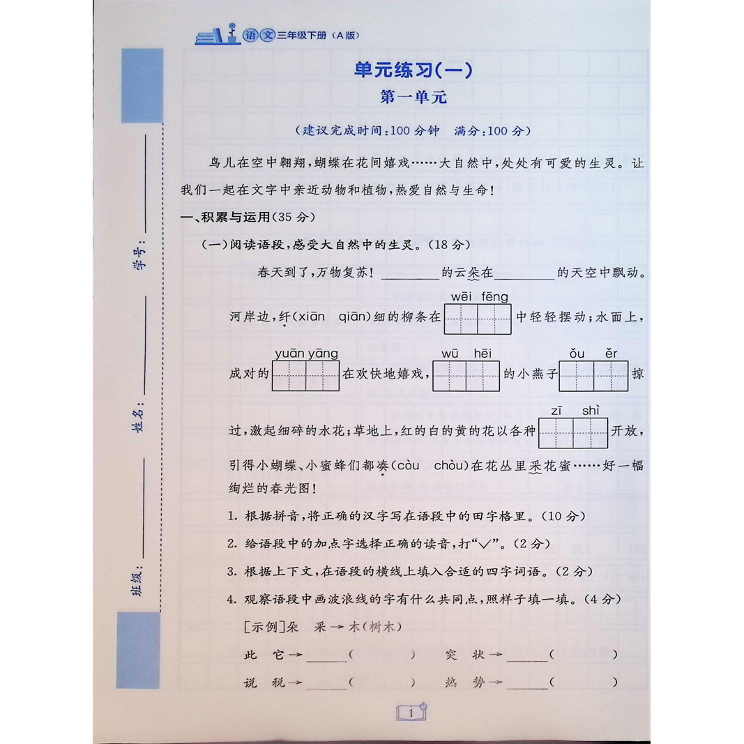 为您提供商品正版 自主学习能力测评单元 测试语文三年级下册A版 人教期中期考卷语文同步试卷广西小学教辅单3 2026春新版的详细介绍,