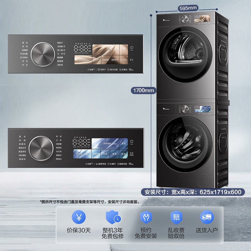 跨代机皇 小天鹅小乌梅5.0 洗衣机变频烘干机 10KG洗烘套装
