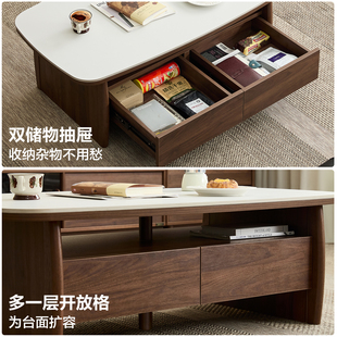 家用原木风收纳储物柜 全友家居中古风岩板茶几电视柜客厅2026新款