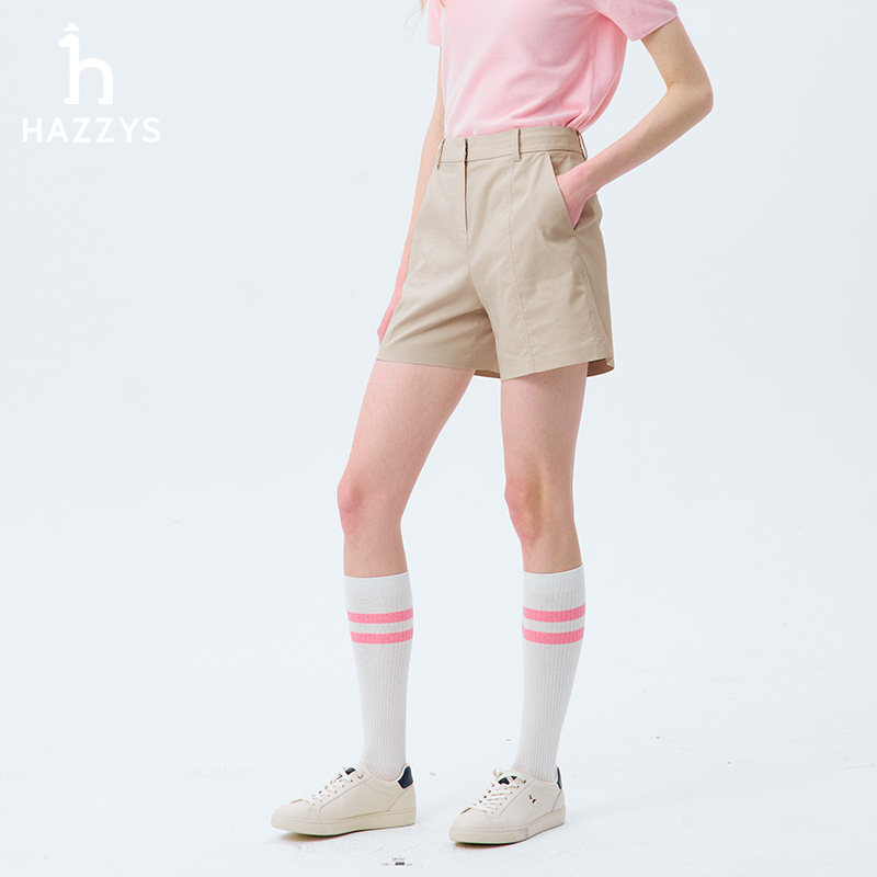 Hazzys哈吉斯春夏裤 净色短裤 女士简约通勤潮流休闲裤 子女时尚由