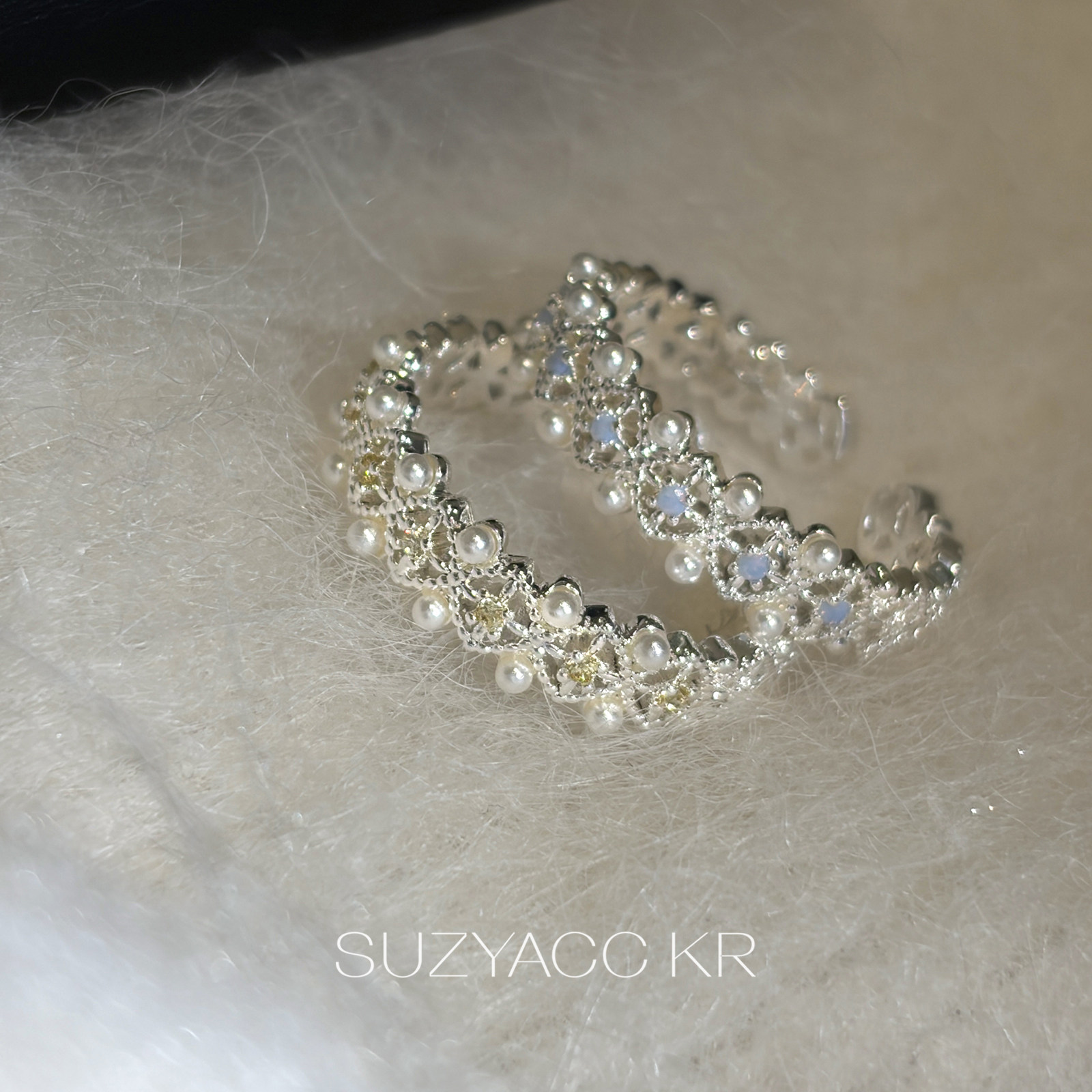kr精致蕾丝仿珍珠合成锆石戒指复古气质小众食指戒指环女 suzyacc由