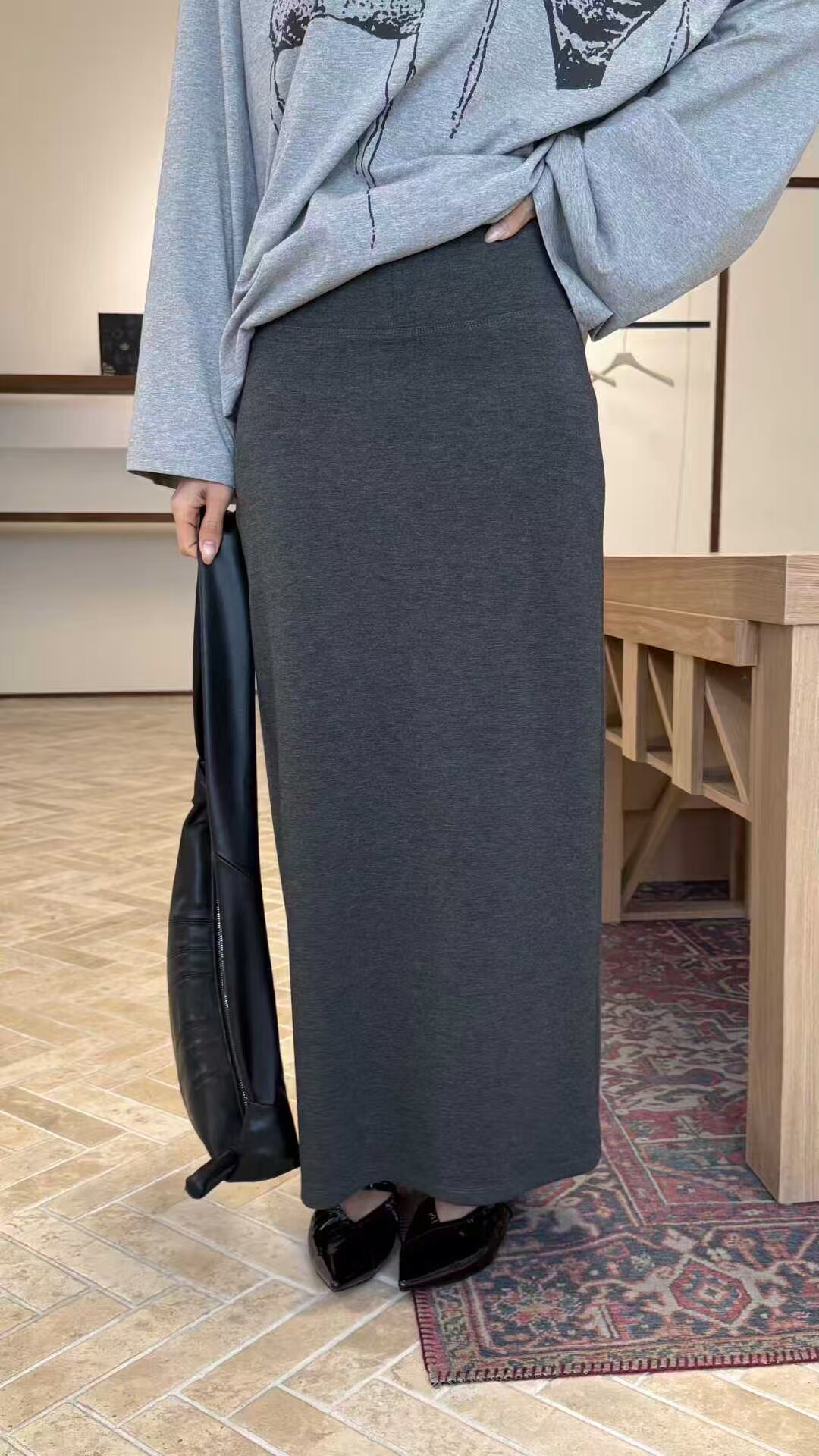 摩登mdeng高腰百搭显瘦直筒后开衩半身裙女春季 中长裙2K169 26新款