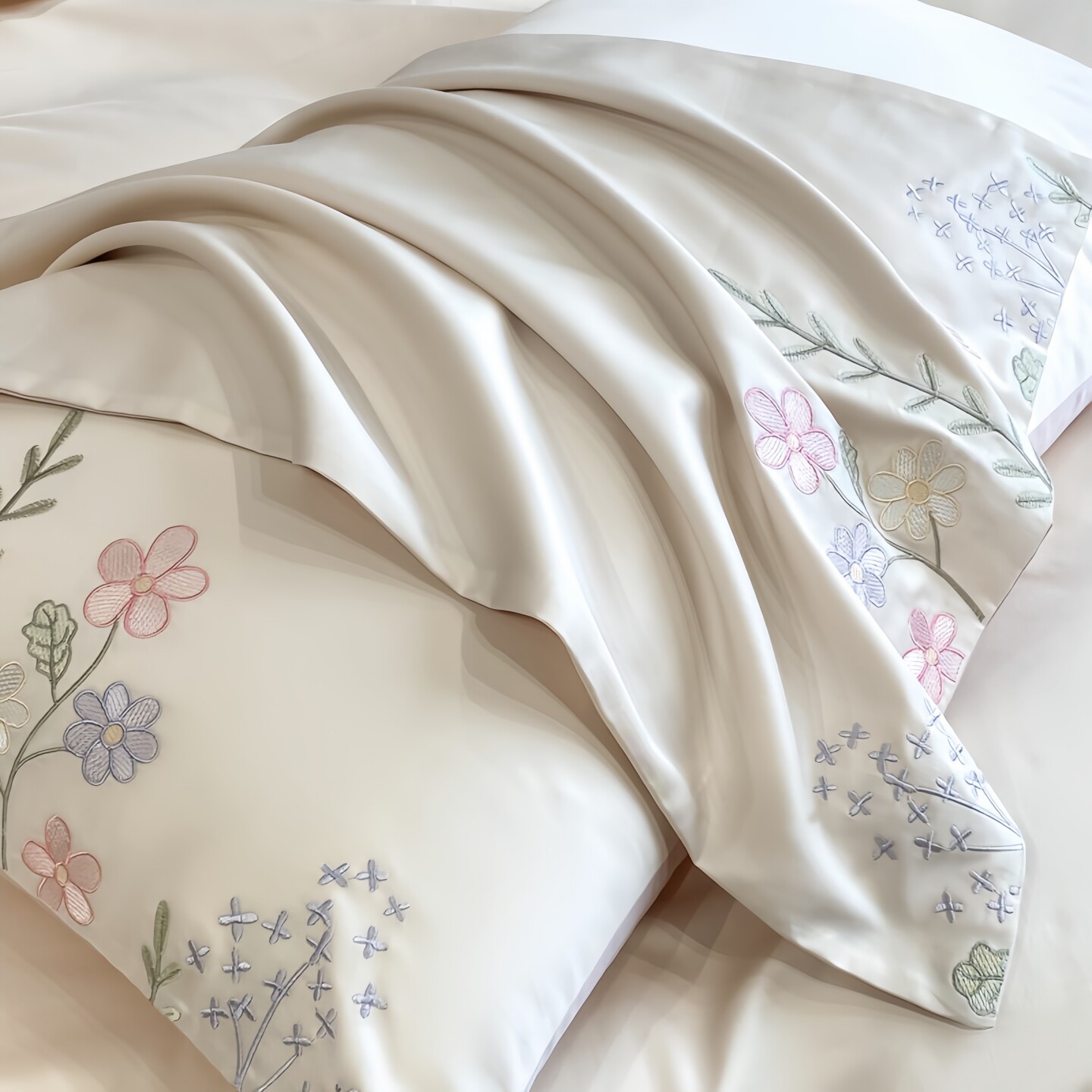 床单被套 简约砂洗天丝刺绣四件套多色床品套件凉感夏季