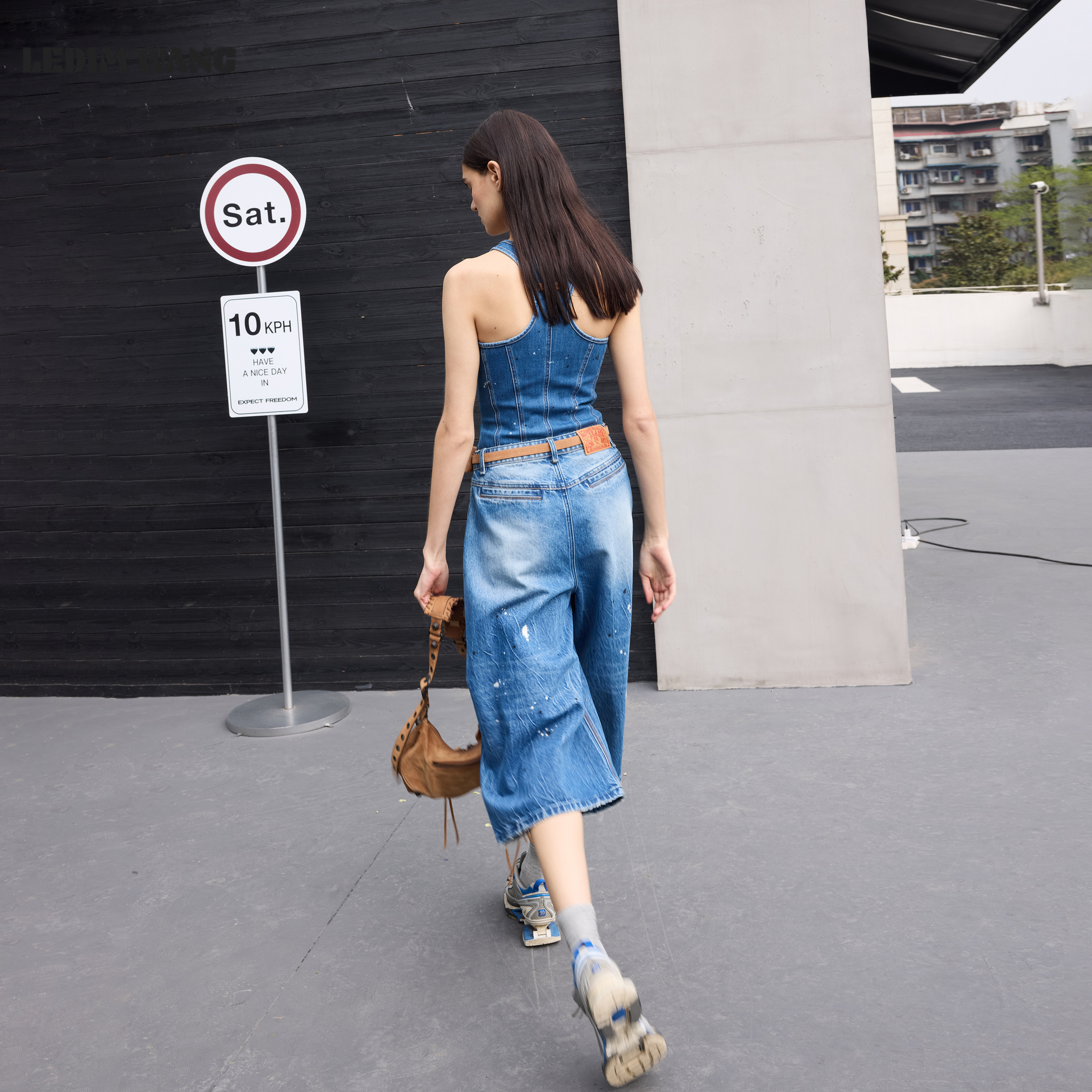 显瘦修身 上衣 WANG水洗收腰工字牛仔背心吊带女2026春夏新款 LEDIM