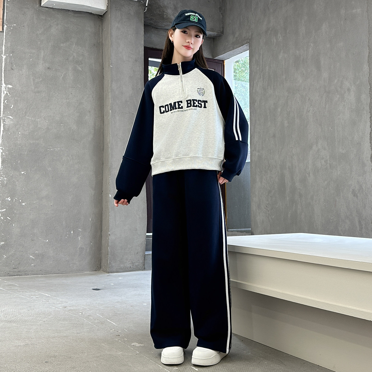 女运动休闲通勤慵懒时尚 2026春款 套装 两件套长袖 百搭阔腿裤