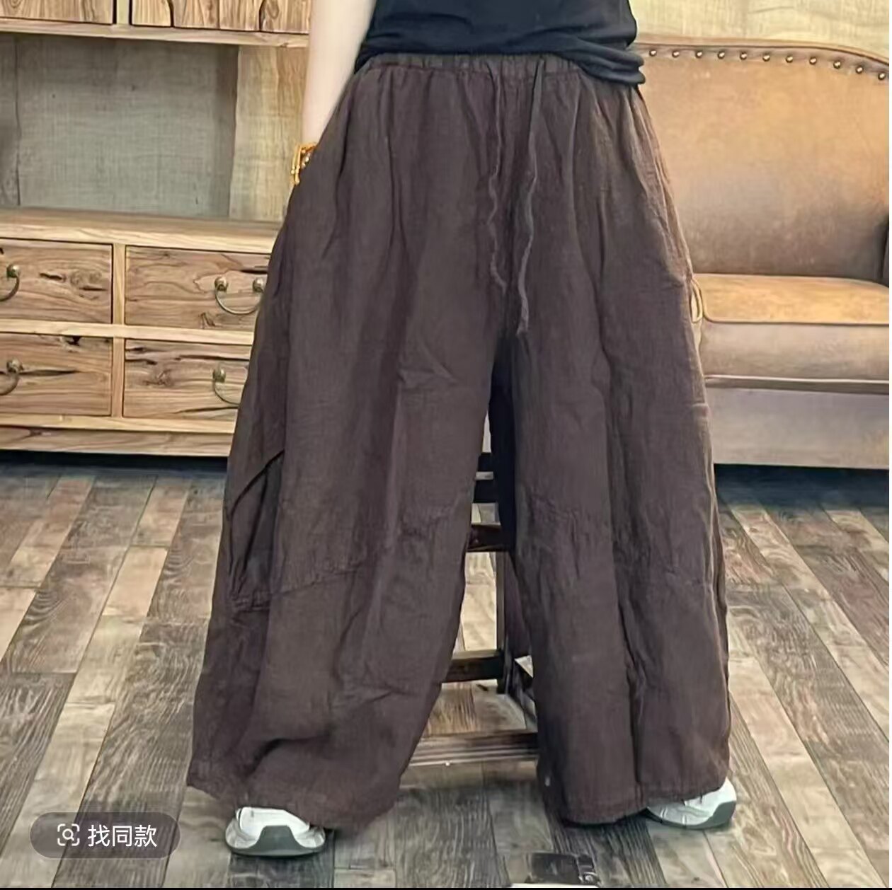新品 春季 7597 臀围140长90 女士裤 子 麻休闲百搭直筒阔腿裤