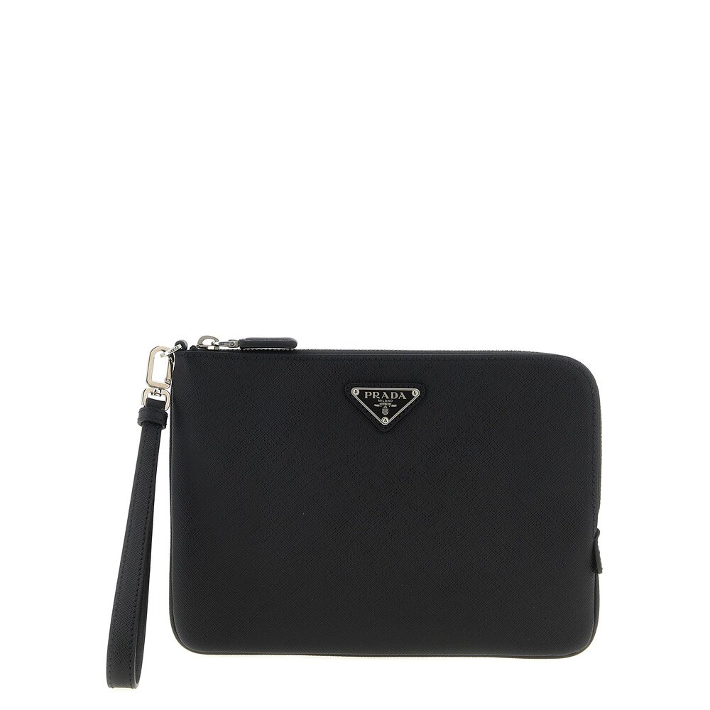 2NH024PN9F0002 手拿包 男士 clutch 黑色 Saffiano AW2025 PRADA由