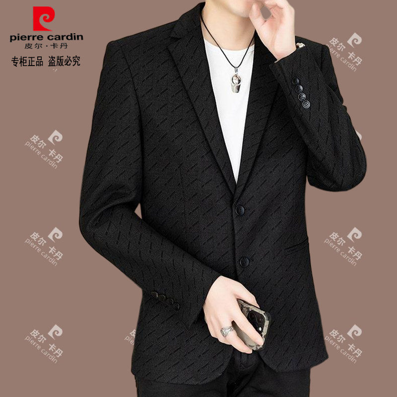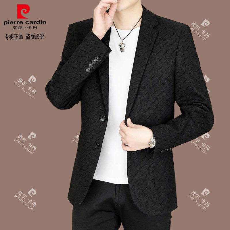 皮尔卡丹春季 高档西服男士 商务休闲百搭免烫外套青年潮流西装 新款由