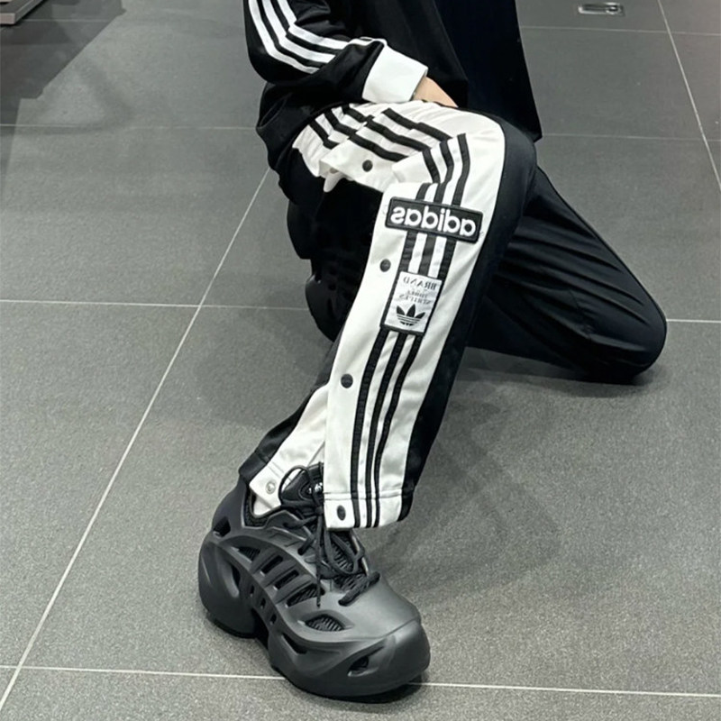 宽松运动阔腿长裤 IU2519 三条纹排扣裤 adidas阿迪达斯三叶草女经典