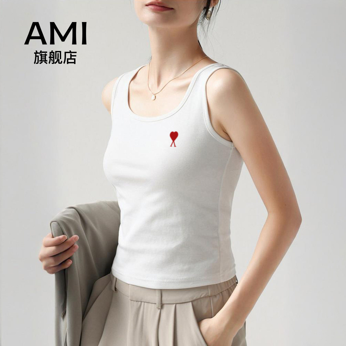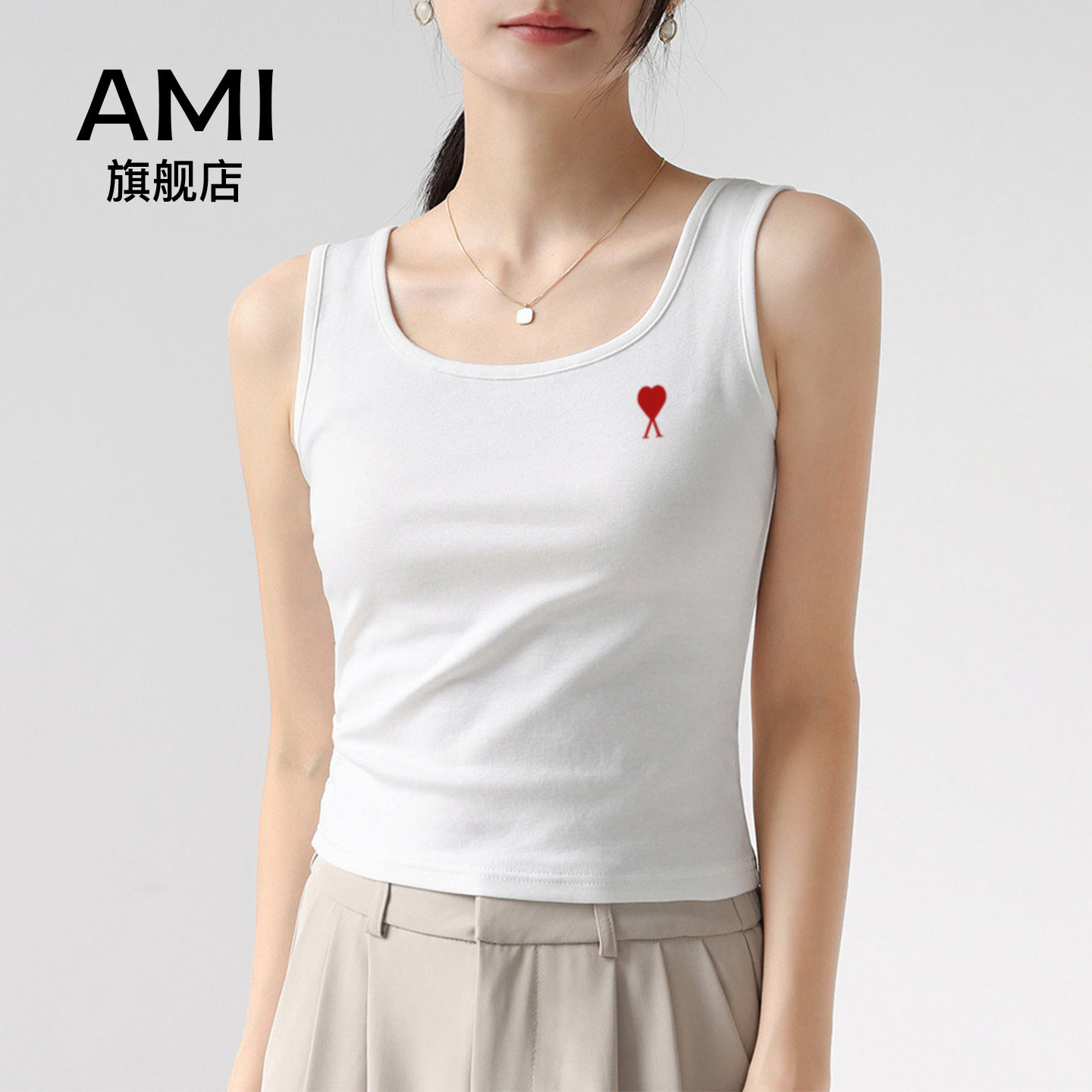 为您提供商品AMI官方白色吊带背心女内搭防走光2026夏百搭打底衫 上衣外穿 修身的详细介绍,
